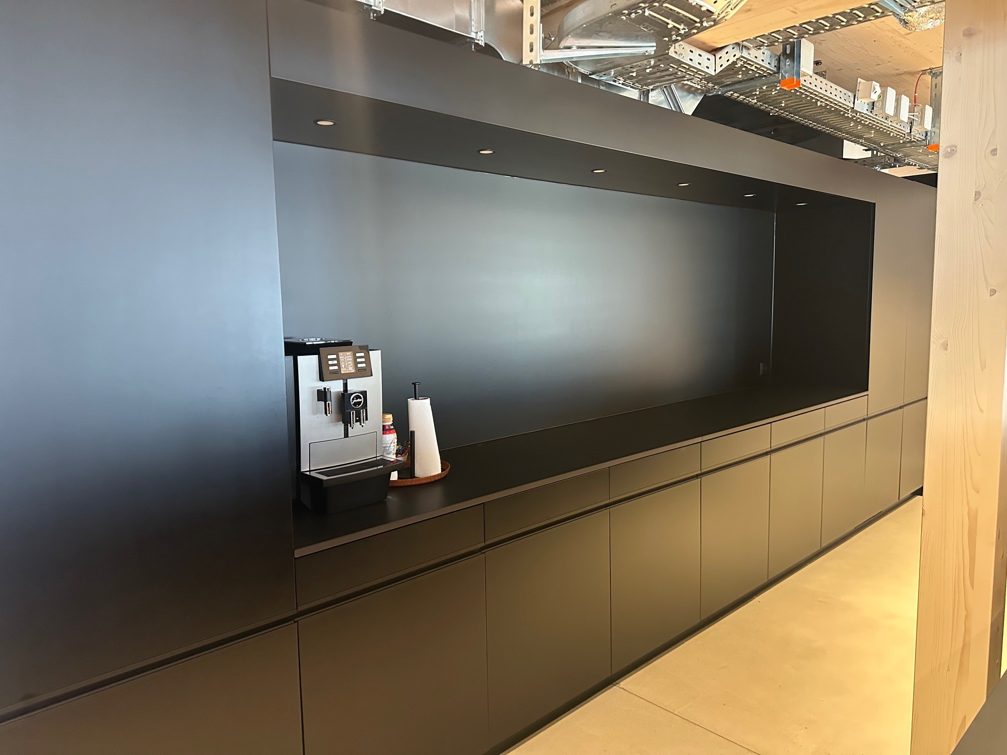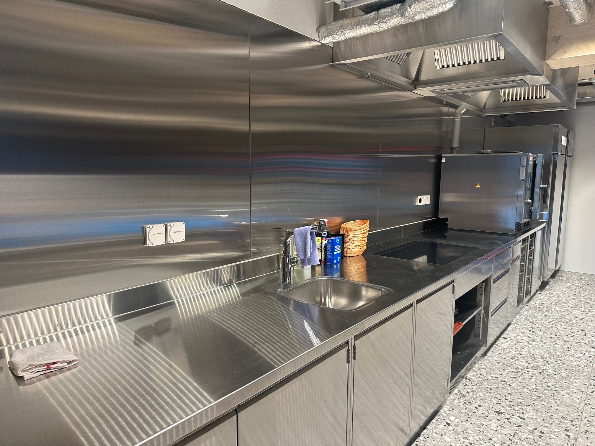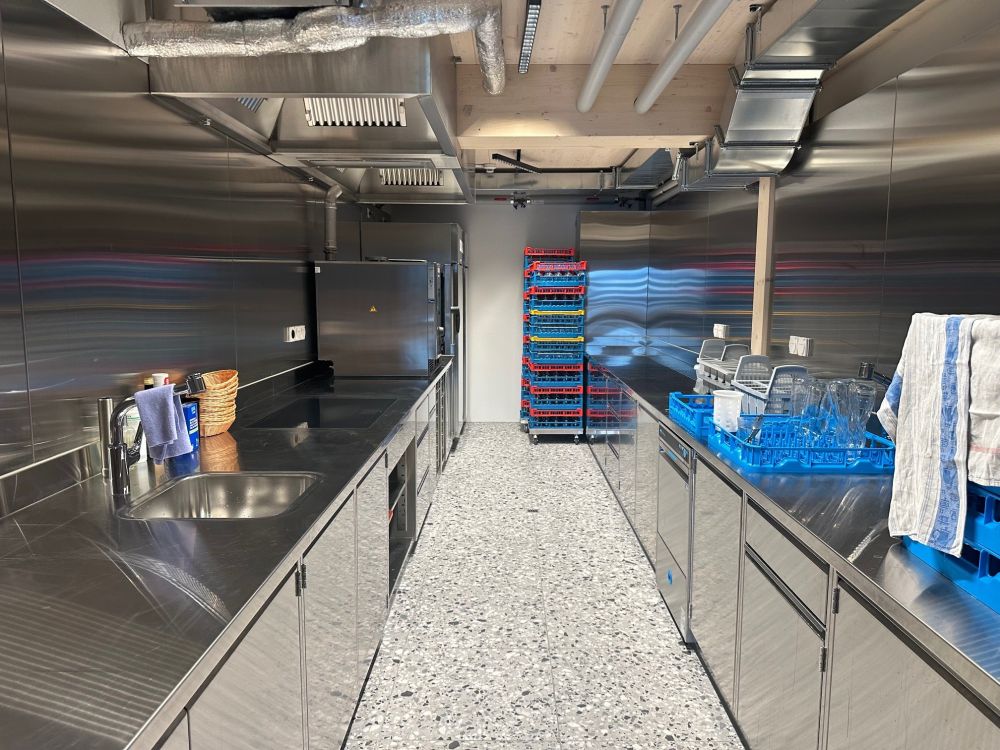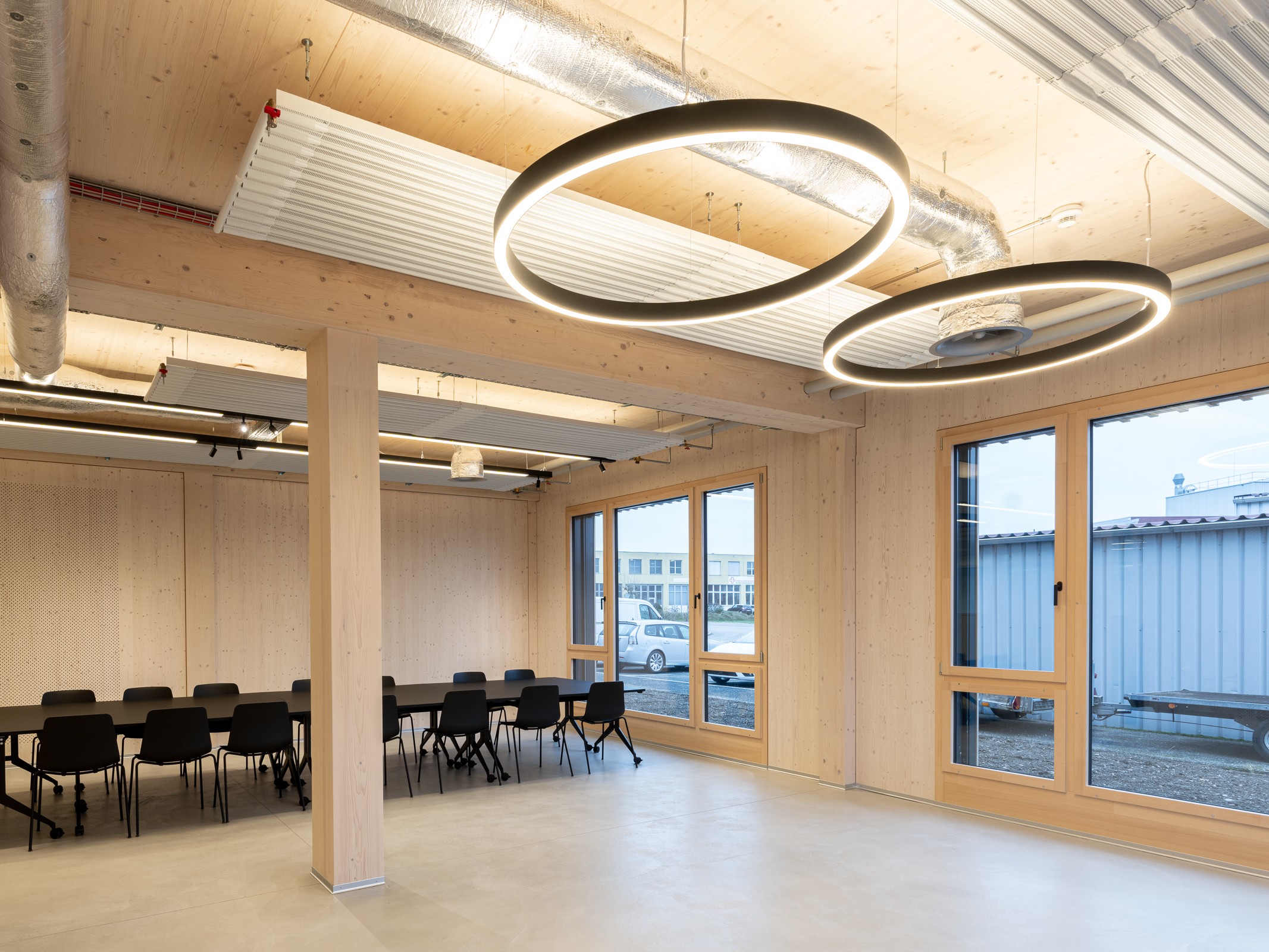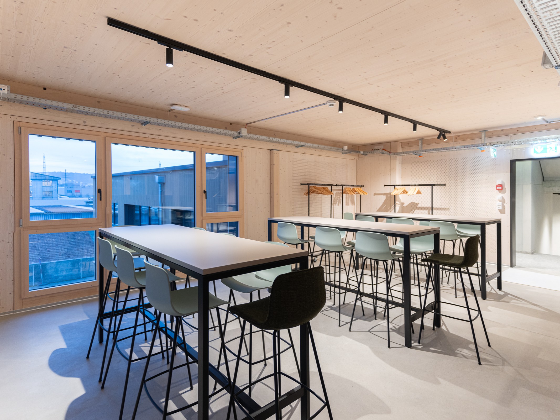 À l’intérieur aussi, les travaux avancent à plein régime. Le menuisier apporte la touche finale à chaque pièce – le design choisi devient maintenant clairement visible. Les éléments coupe-feu testés sont opérationnels, et le vaste système de ventilation est déjà en phase d’essai.