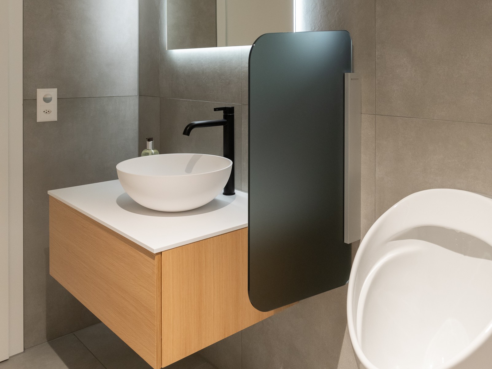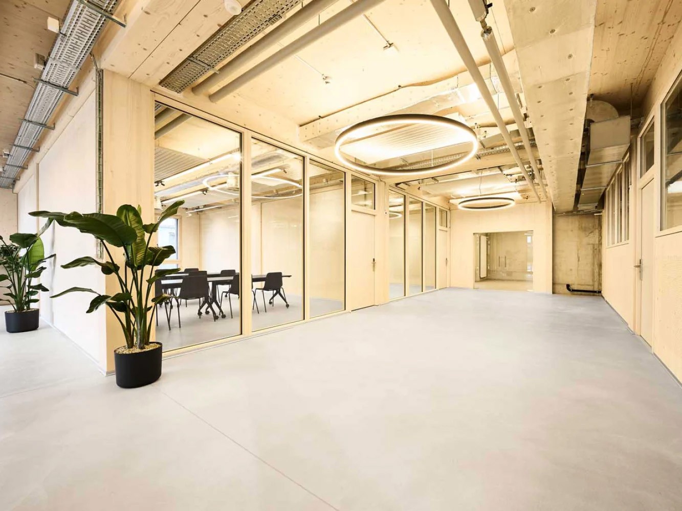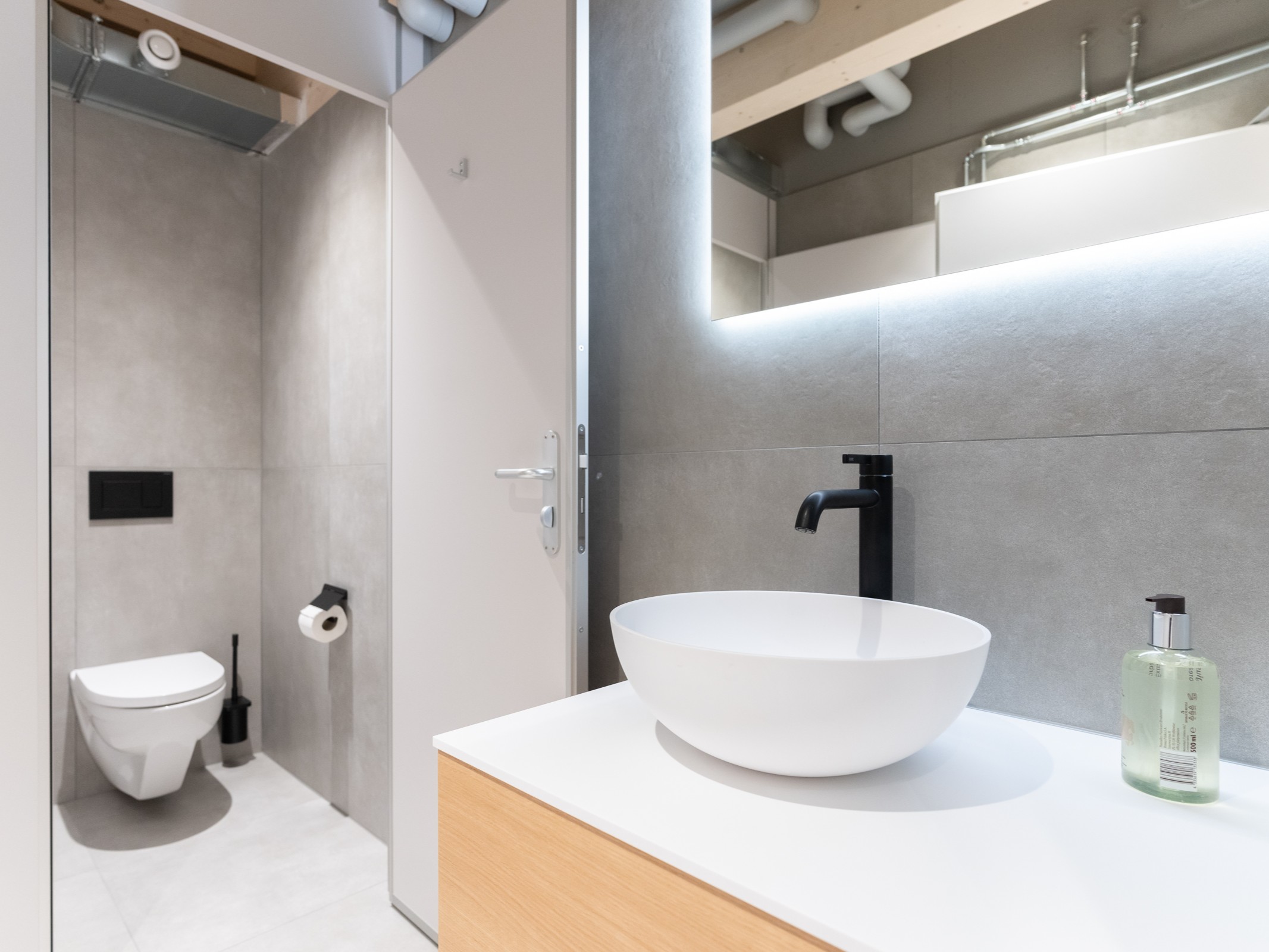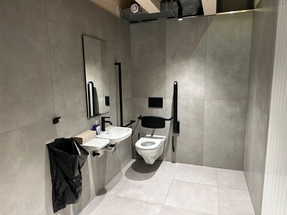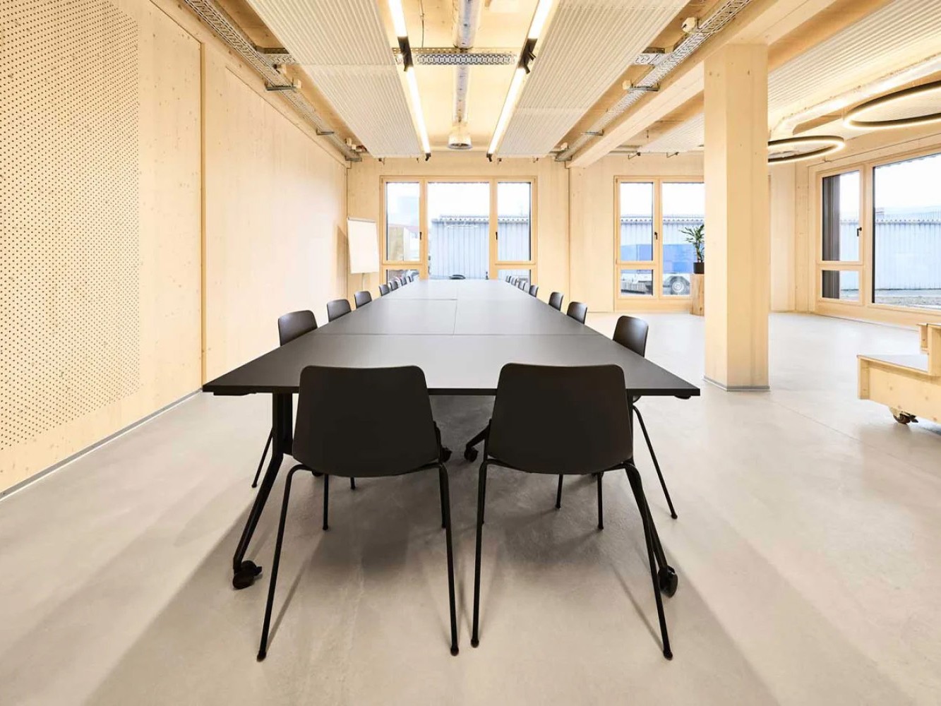 À l’intérieur aussi, les travaux avancent à plein régime. Le menuisier apporte la touche finale à chaque pièce – le design choisi devient maintenant clairement visible. Les éléments coupe-feu testés sont opérationnels, et le vaste système de ventilation est déjà en phase d’essai.