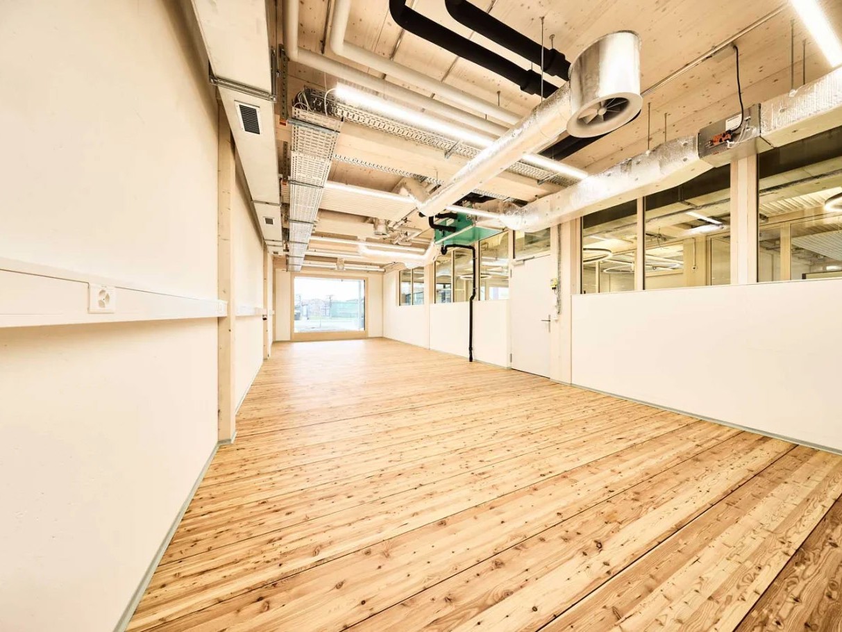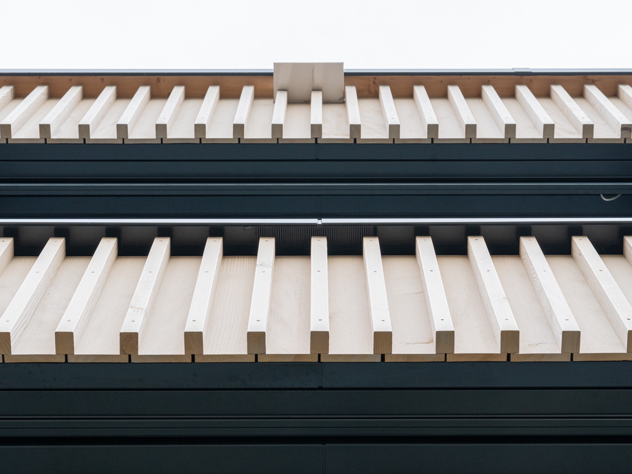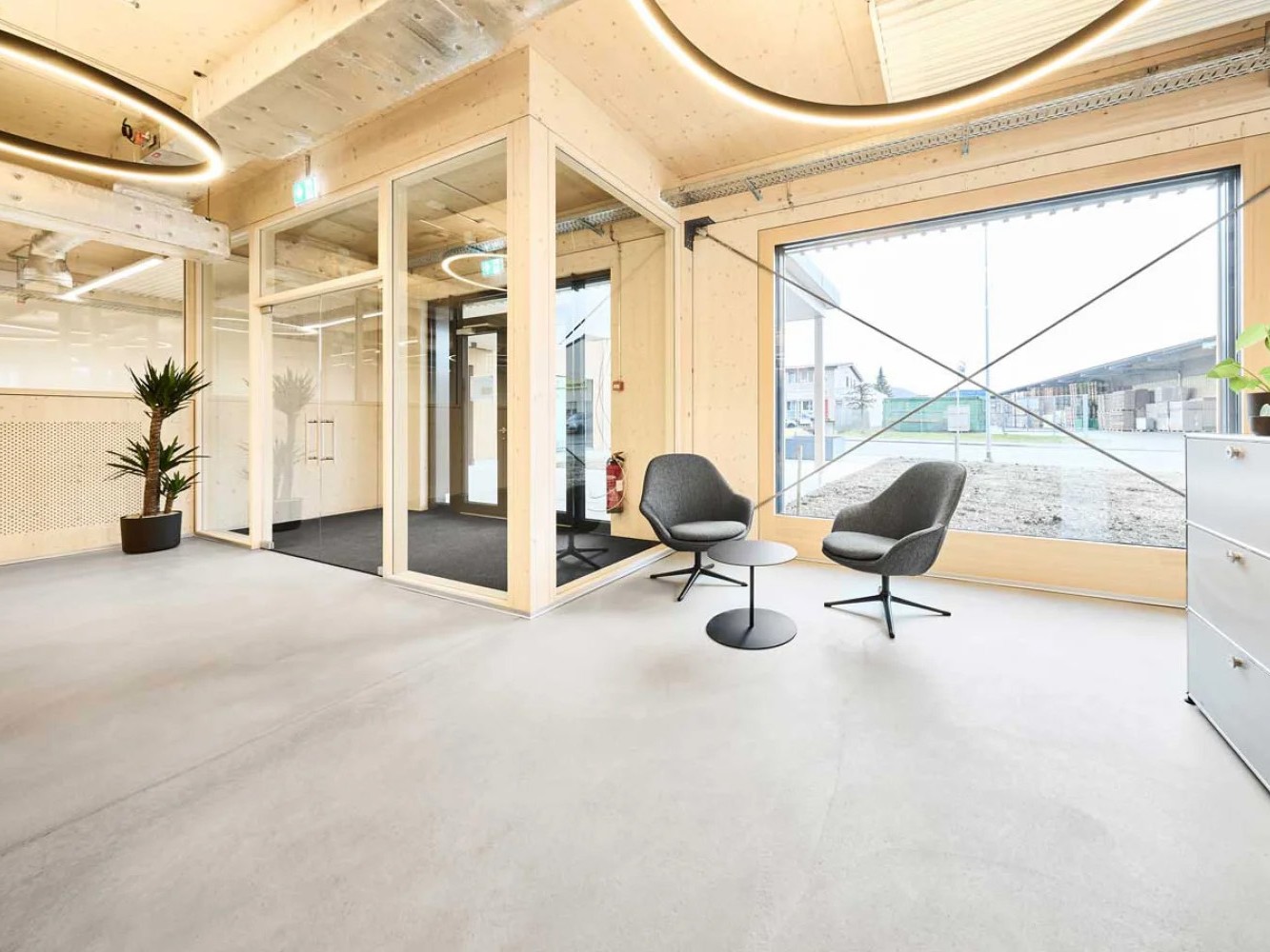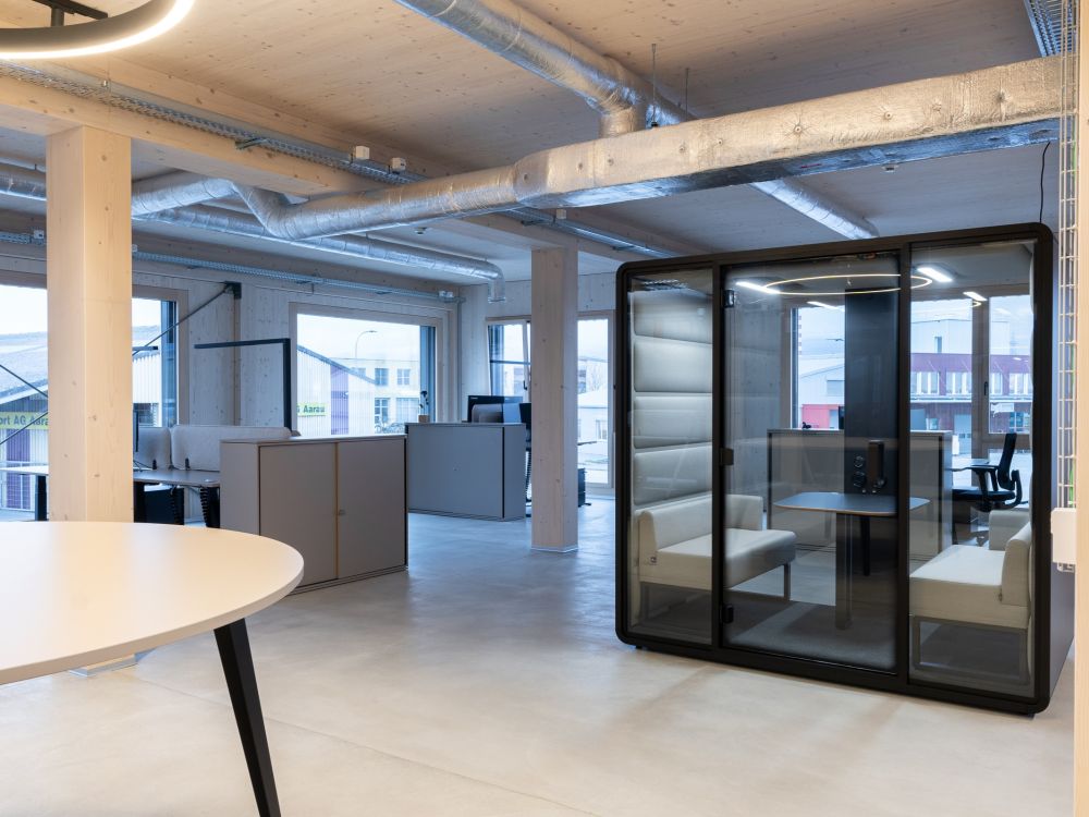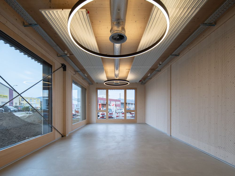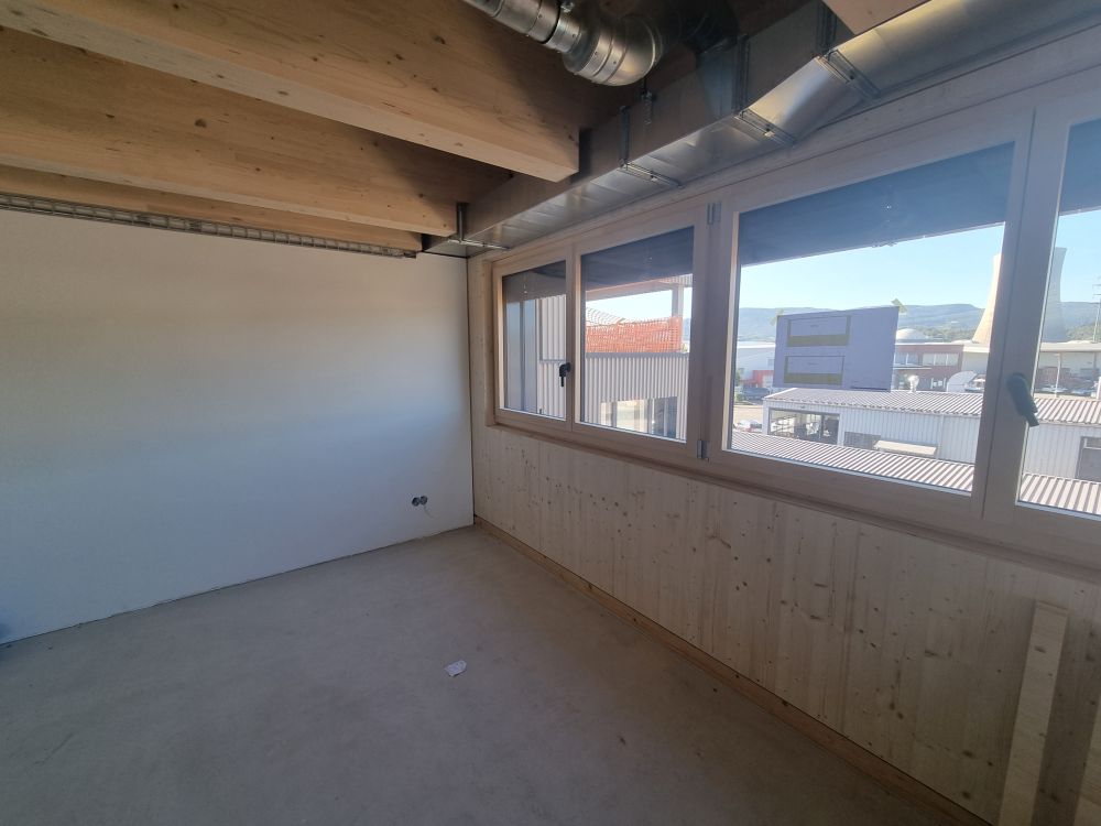 Les travaux sur l'immeuble des bureaux avancent rapidement. La construction en bois est en grande partie terminée, tout comme le toit plat.