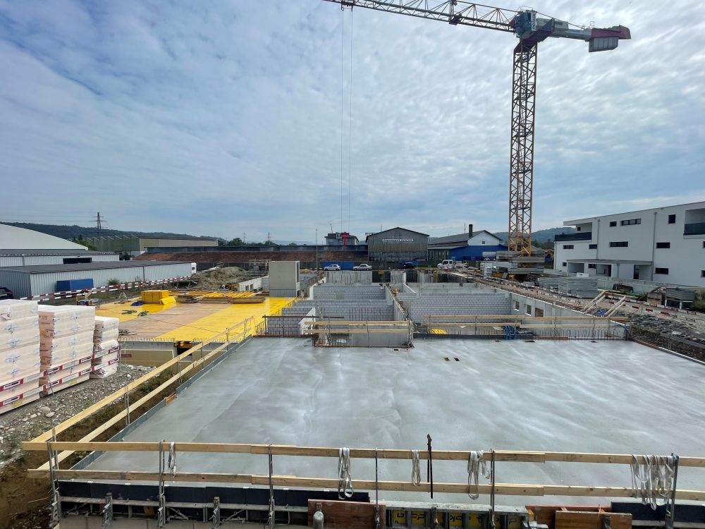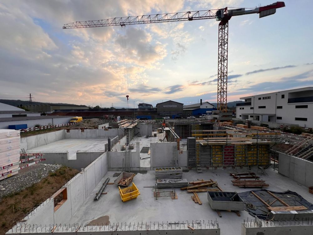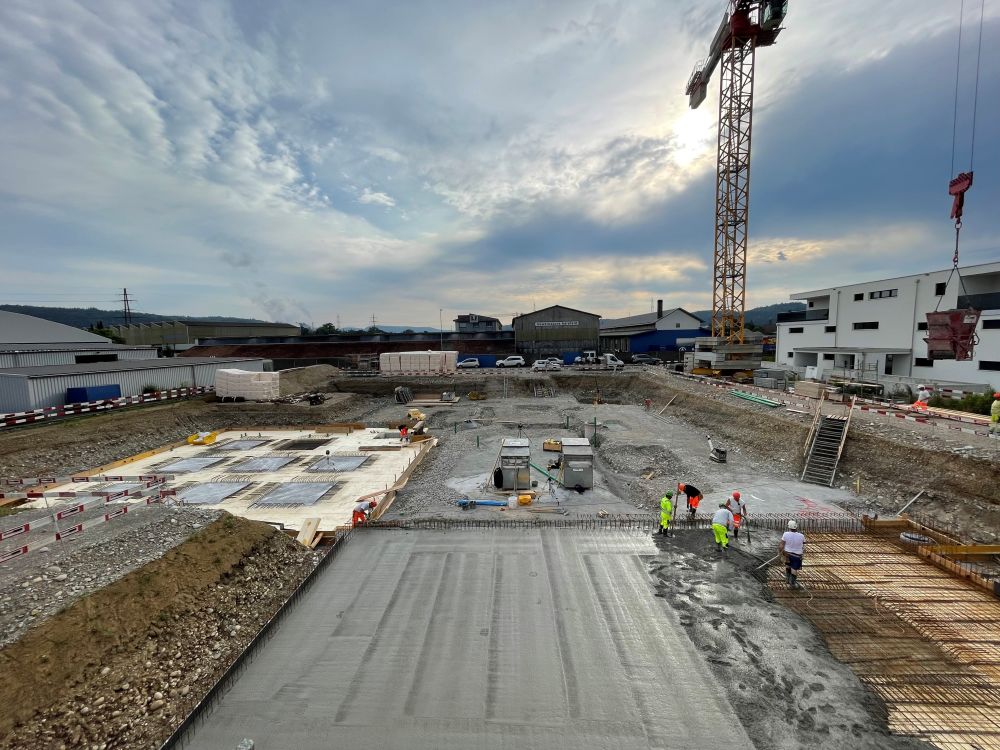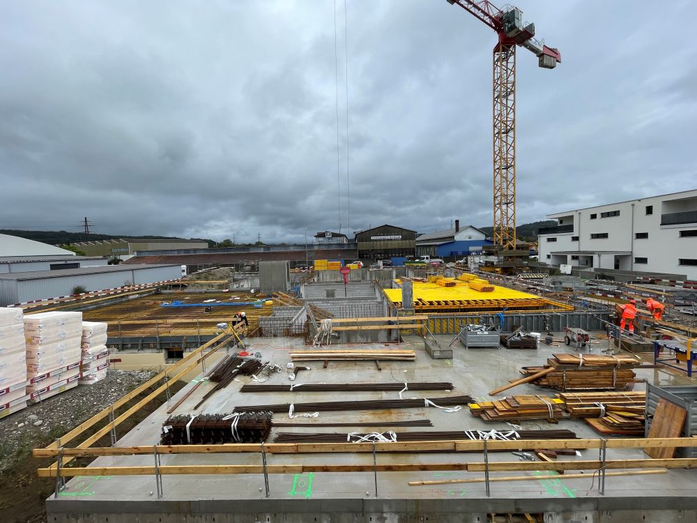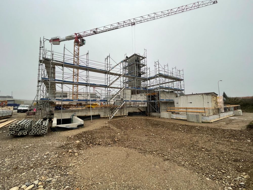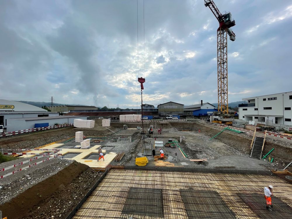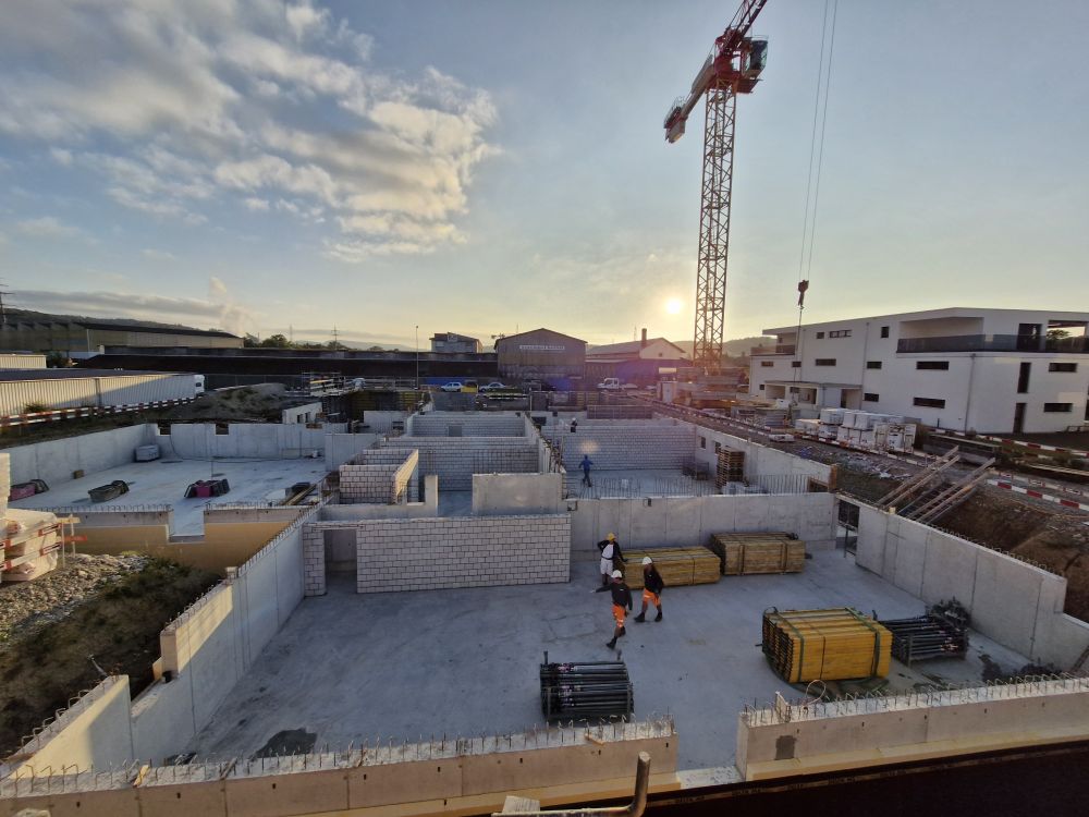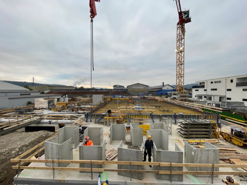 Avec l'achèvement du bétonnage de la dalle, nous entrons à présent dans la phase de gros œuvre de notre projet de nouvelle construction. Cette phase comprend la mise en place des structures porteuses et marquera une avancée significative sur le chantier.
