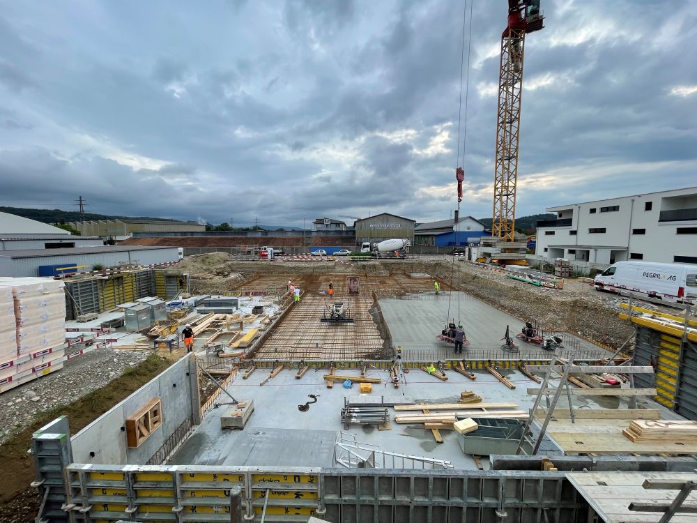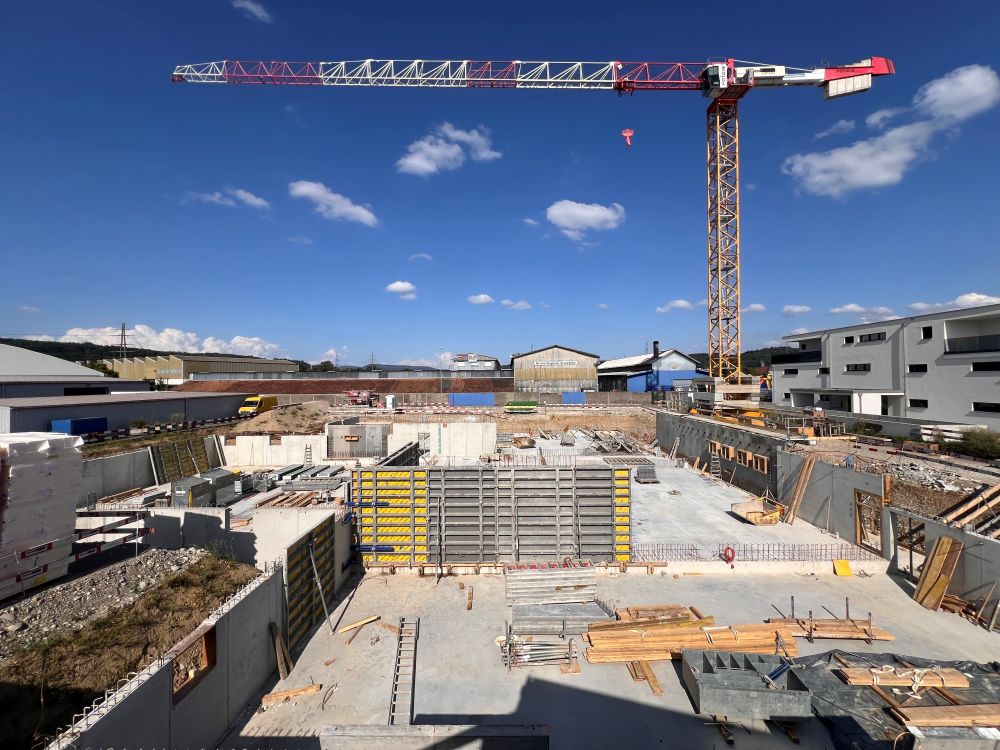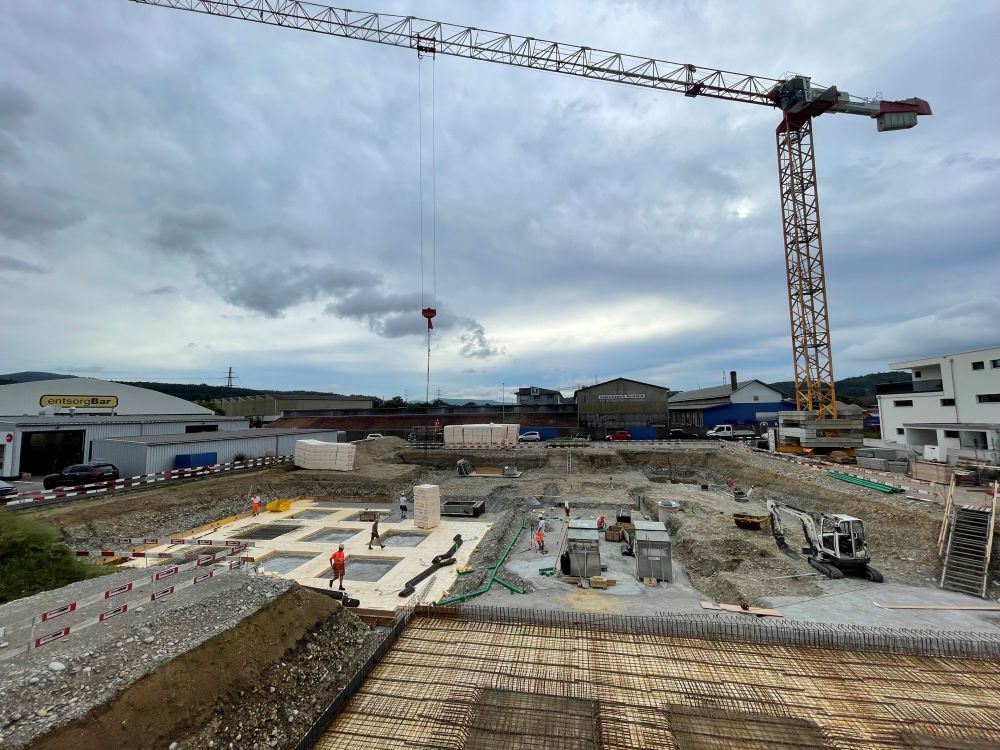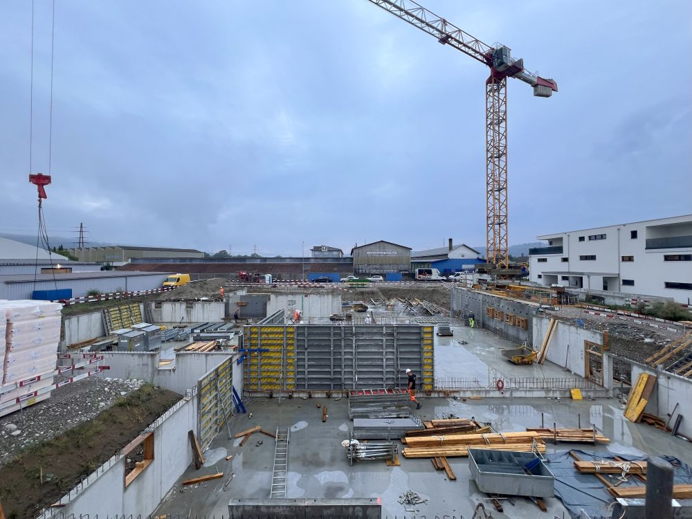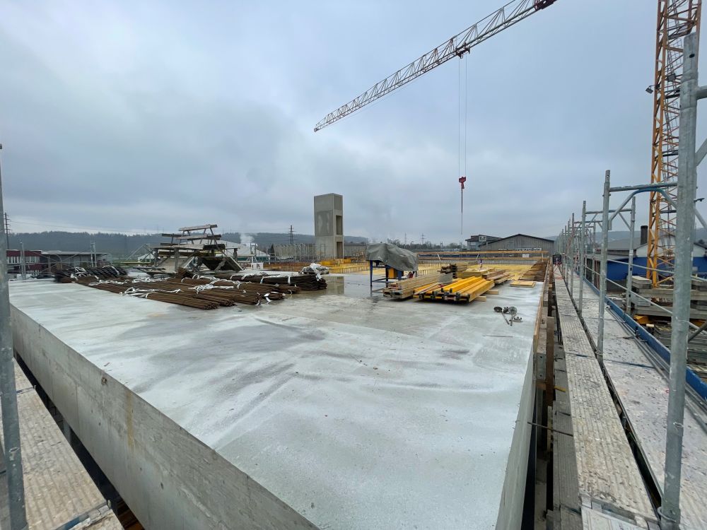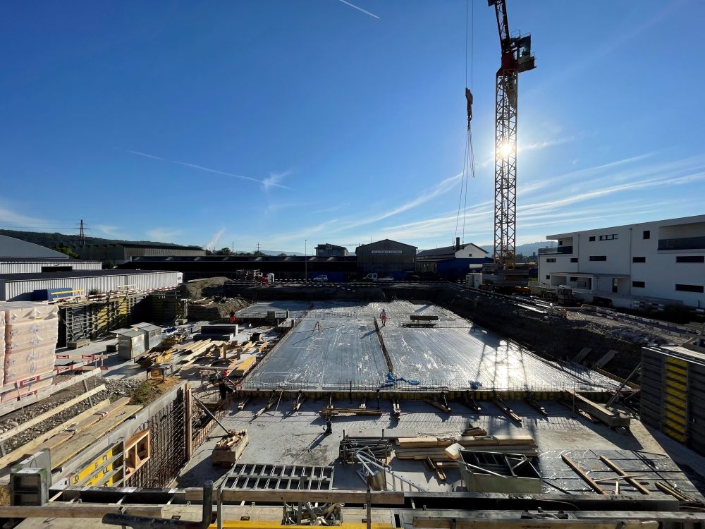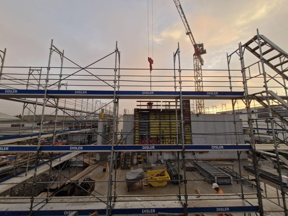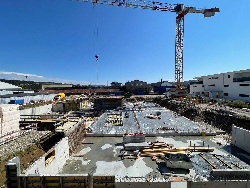 Avec l'achèvement du bétonnage de la dalle, nous entrons à présent dans la phase de gros œuvre de notre projet de nouvelle construction. Cette phase comprend la mise en place des structures porteuses et marquera une avancée significative sur le chantier.