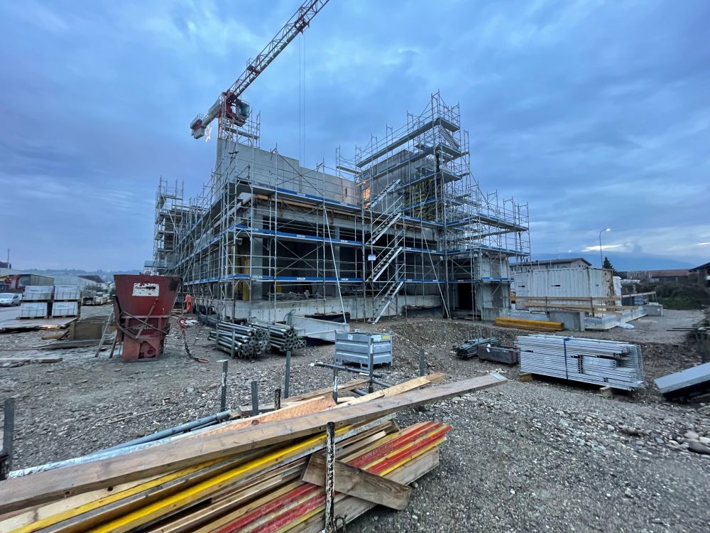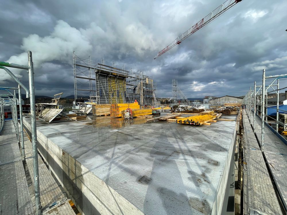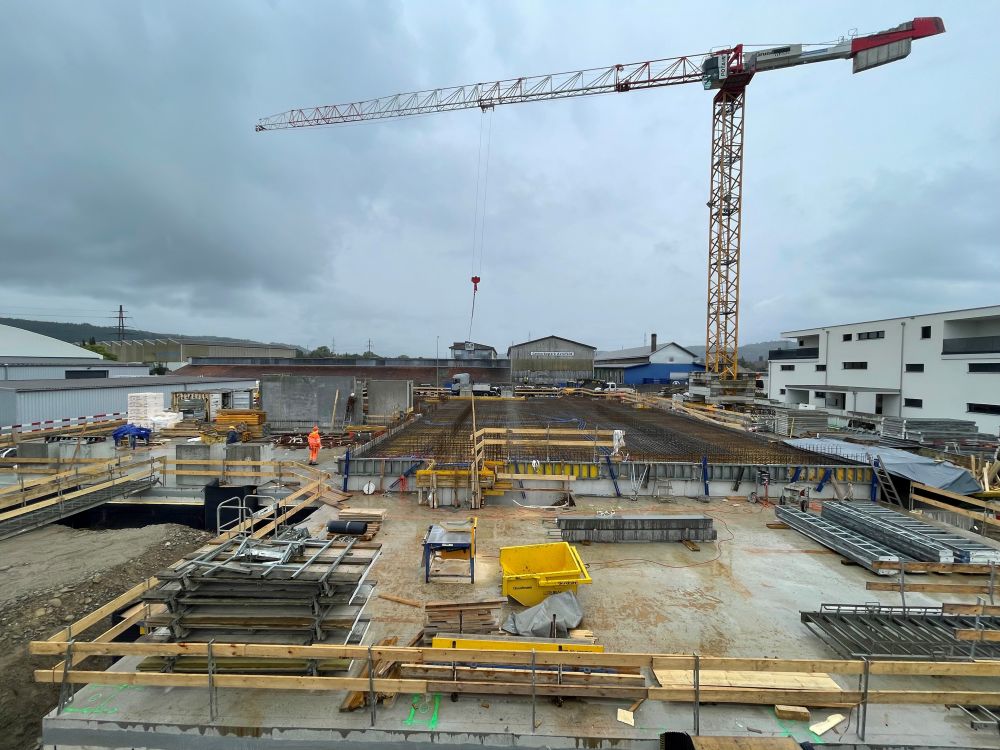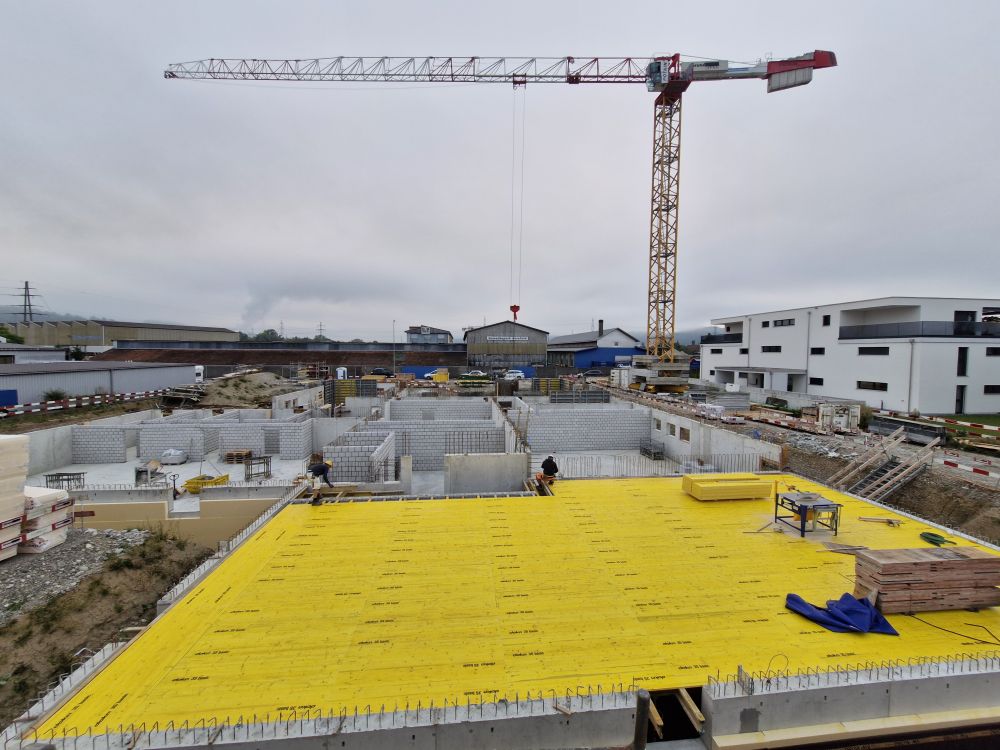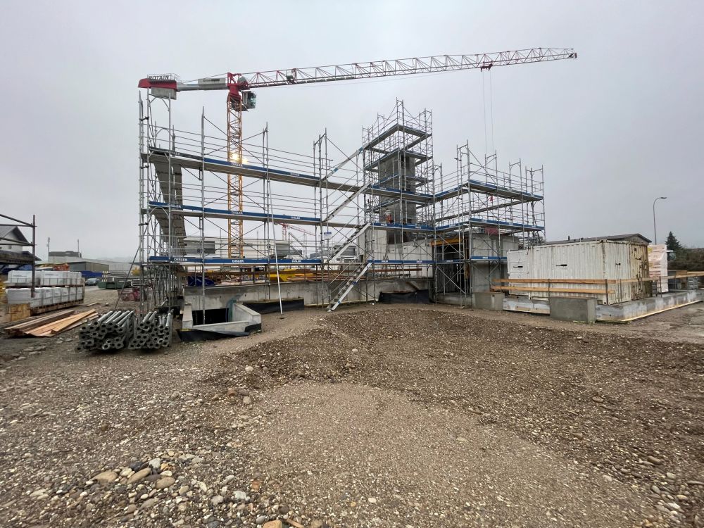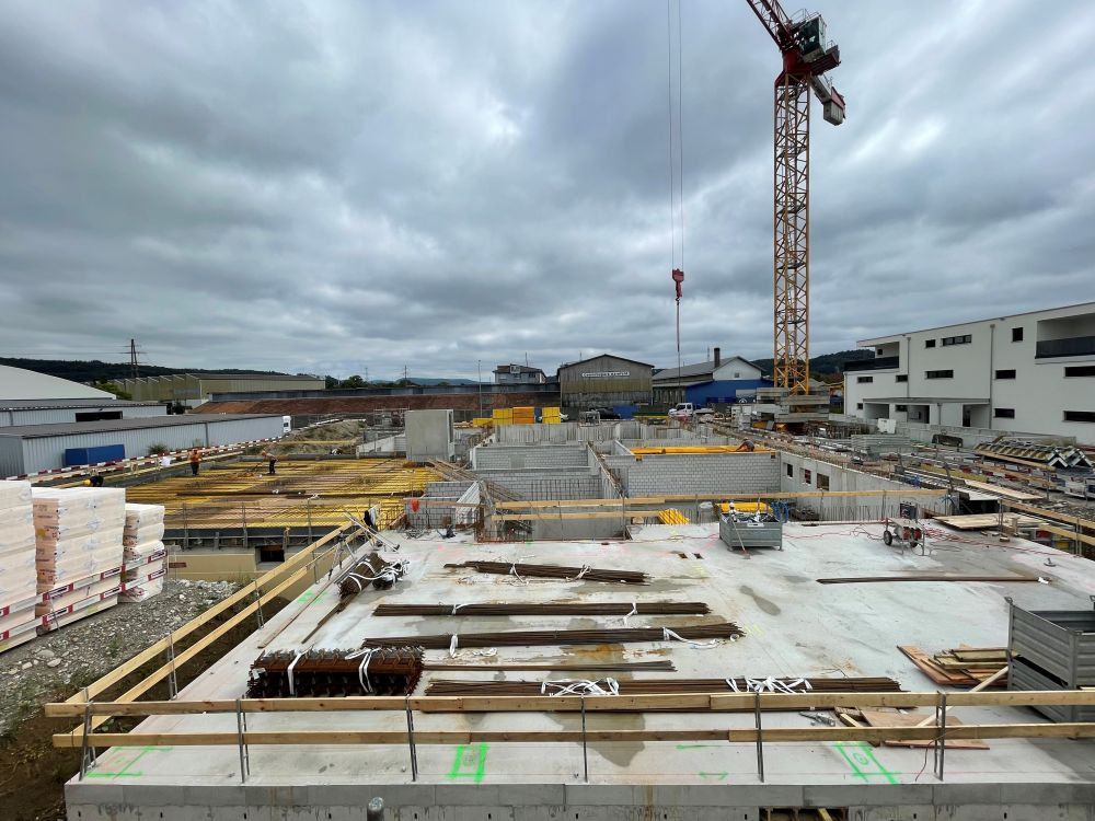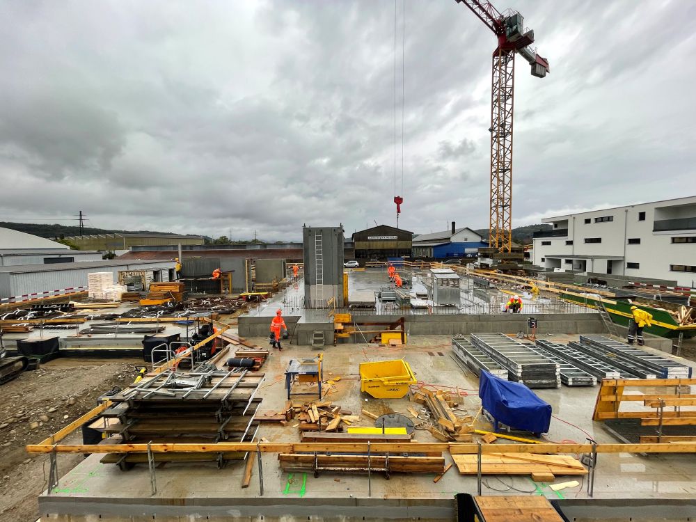 Avec l'achèvement du bétonnage de la dalle, nous entrons à présent dans la phase de gros œuvre de notre projet de nouvelle construction. Cette phase comprend la mise en place des structures porteuses et marquera une avancée significative sur le chantier.