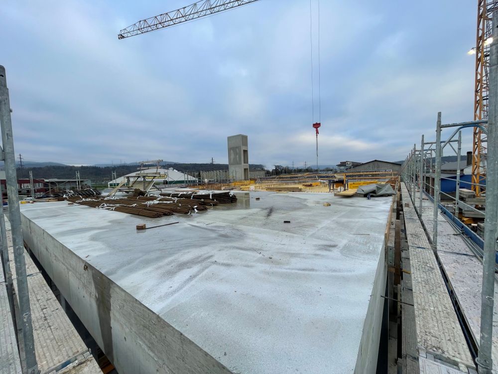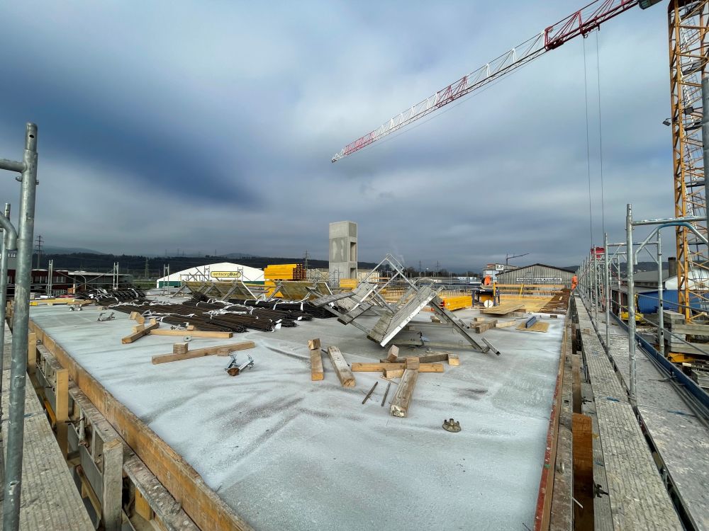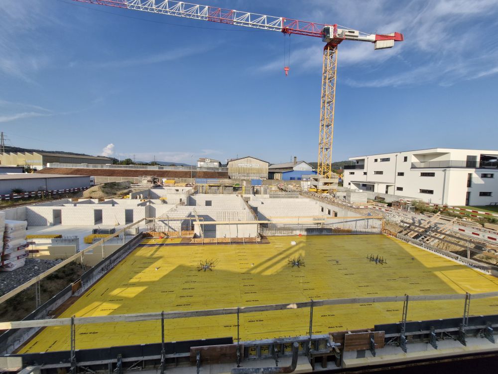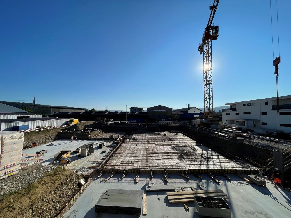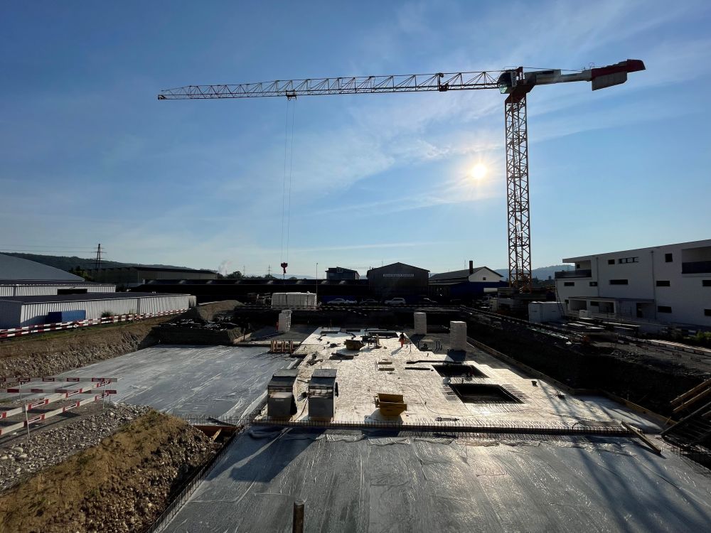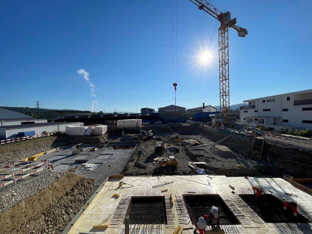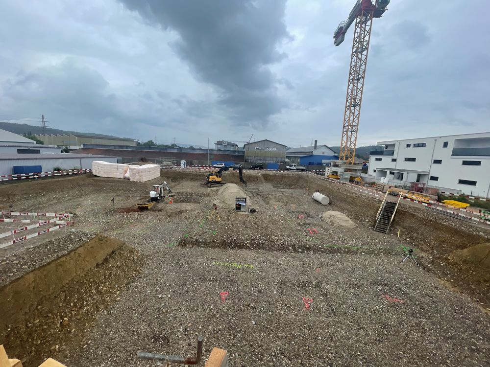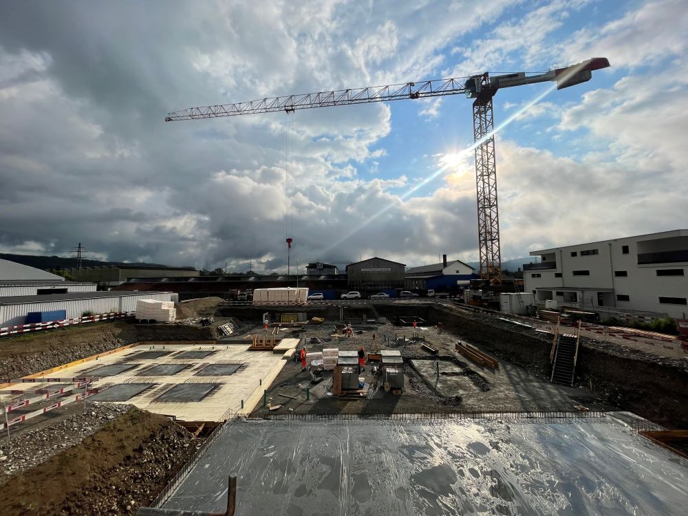 Avec l'achèvement du bétonnage de la dalle, nous entrons à présent dans la phase de gros œuvre de notre projet de nouvelle construction. Cette phase comprend la mise en place des structures porteuses et marquera une avancée significative sur le chantier.