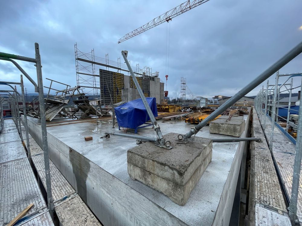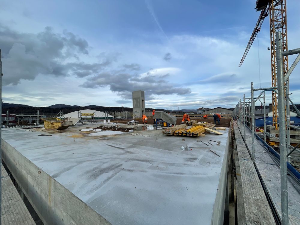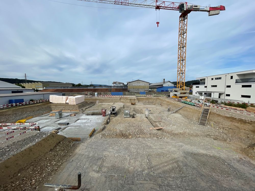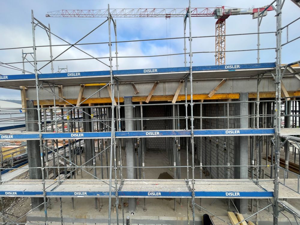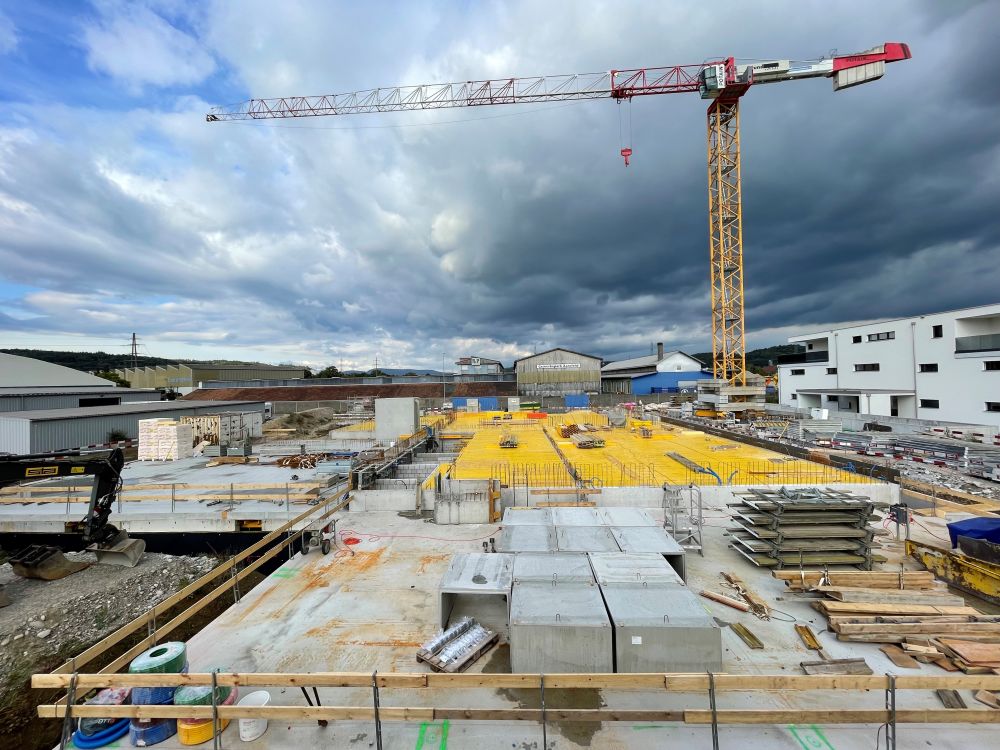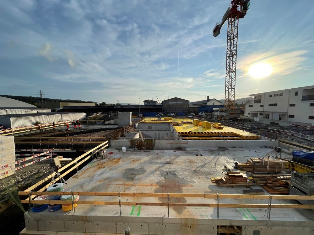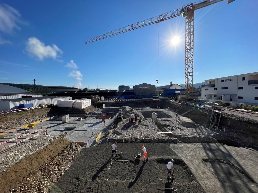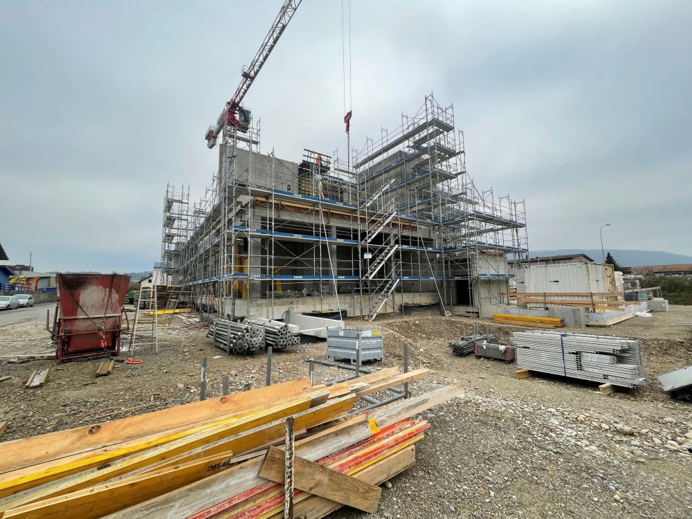 Avec l'achèvement du bétonnage de la dalle, nous entrons à présent dans la phase de gros œuvre de notre projet de nouvelle construction. Cette phase comprend la mise en place des structures porteuses et marquera une avancée significative sur le chantier.