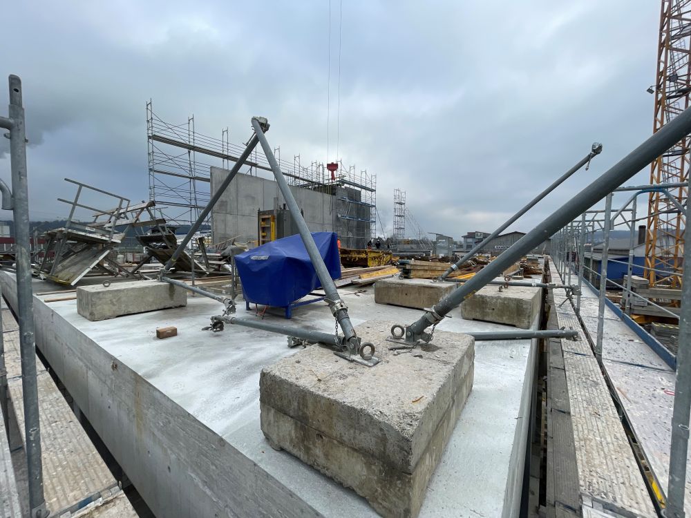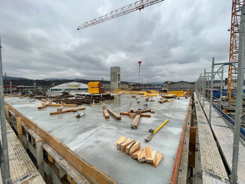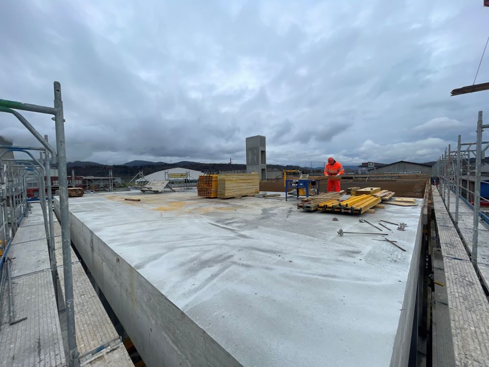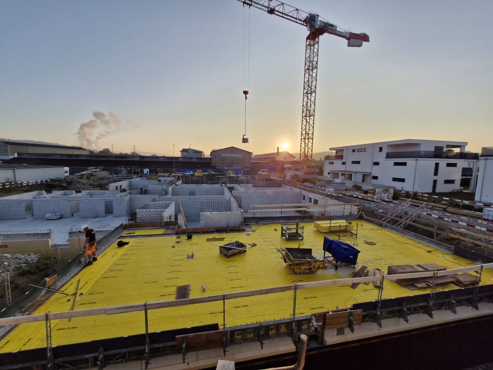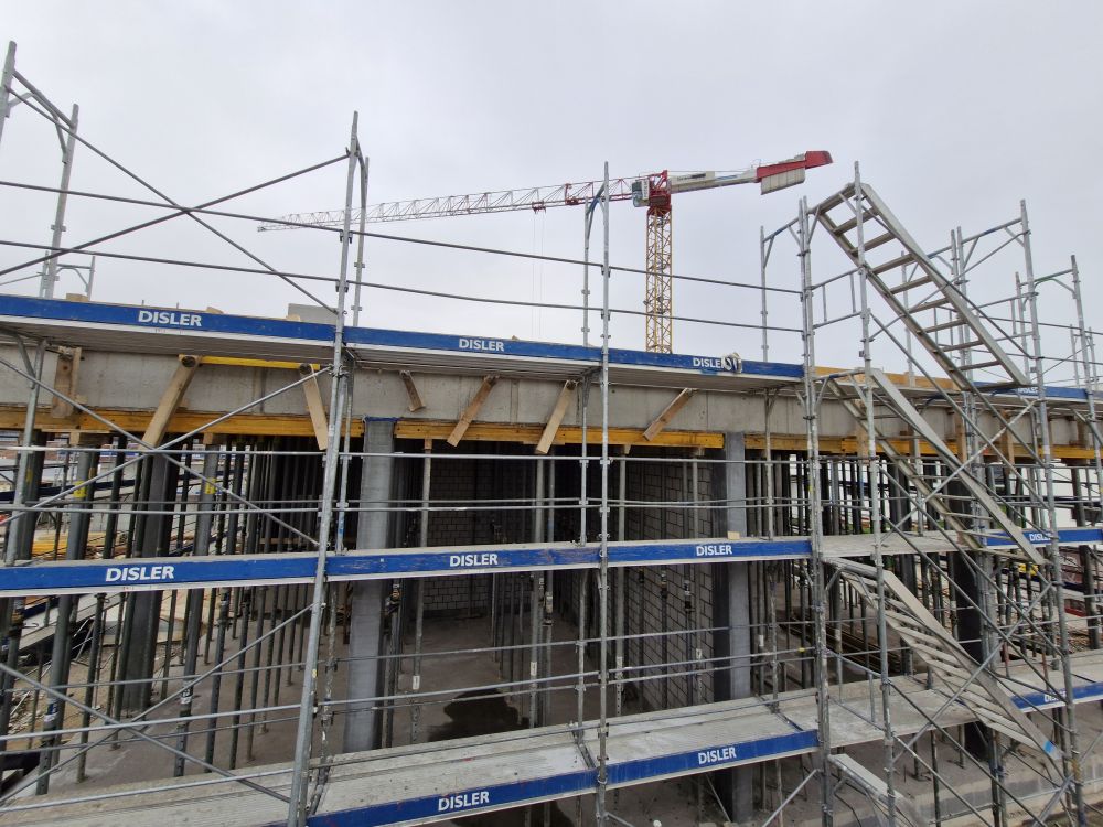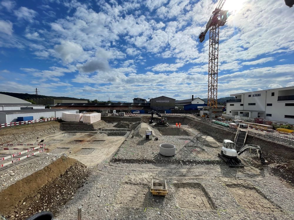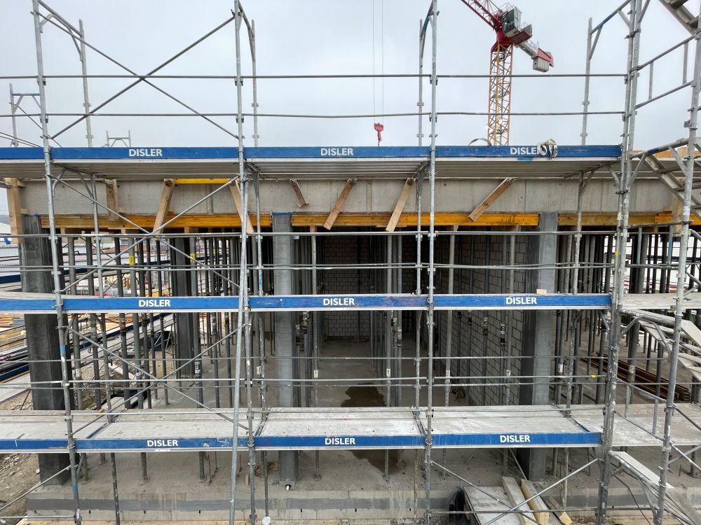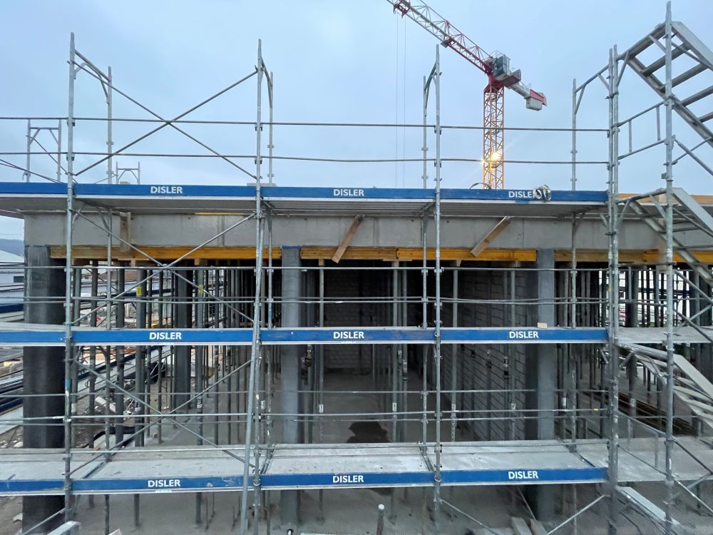 Avec l'achèvement du bétonnage de la dalle, nous entrons à présent dans la phase de gros œuvre de notre projet de nouvelle construction. Cette phase comprend la mise en place des structures porteuses et marquera une avancée significative sur le chantier.
