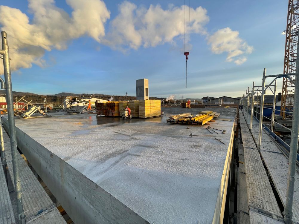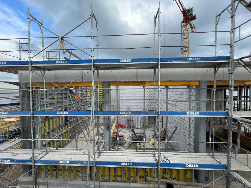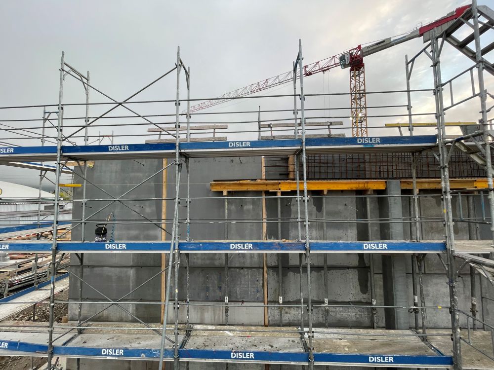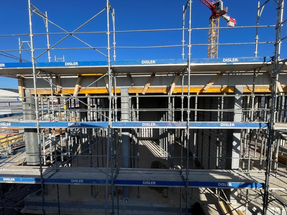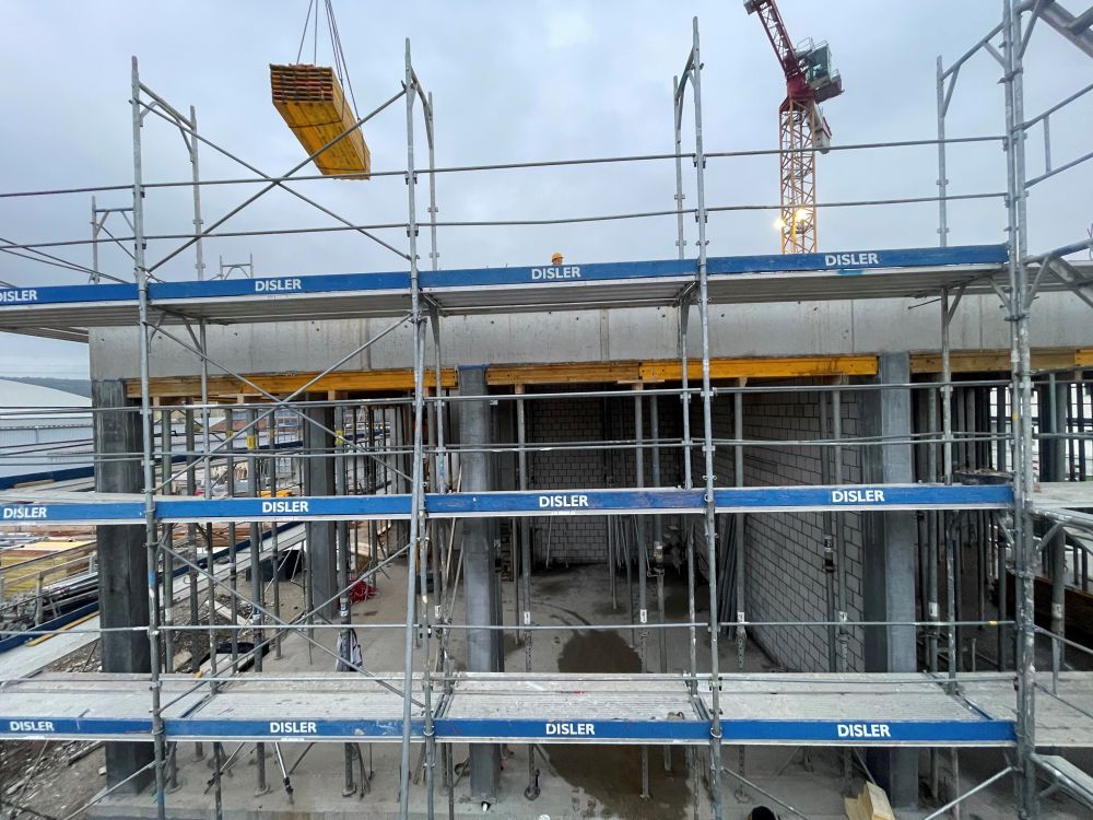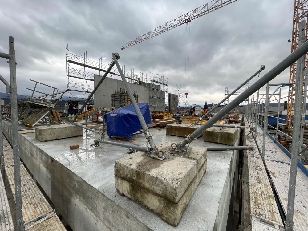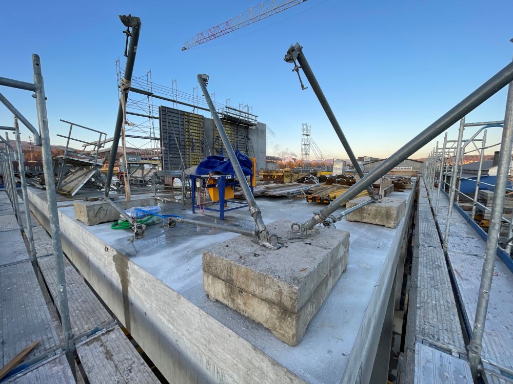 Avec l'achèvement du bétonnage de la dalle, nous entrons à présent dans la phase de gros œuvre de notre projet de nouvelle construction. Cette phase comprend la mise en place des structures porteuses et marquera une avancée significative sur le chantier.