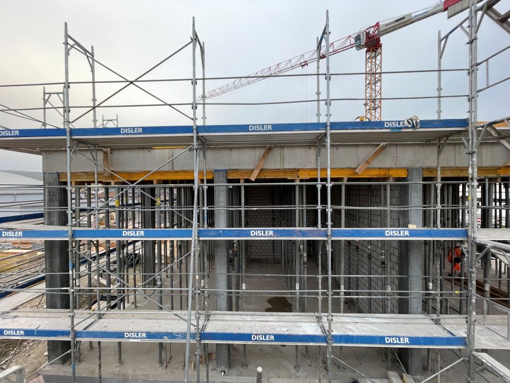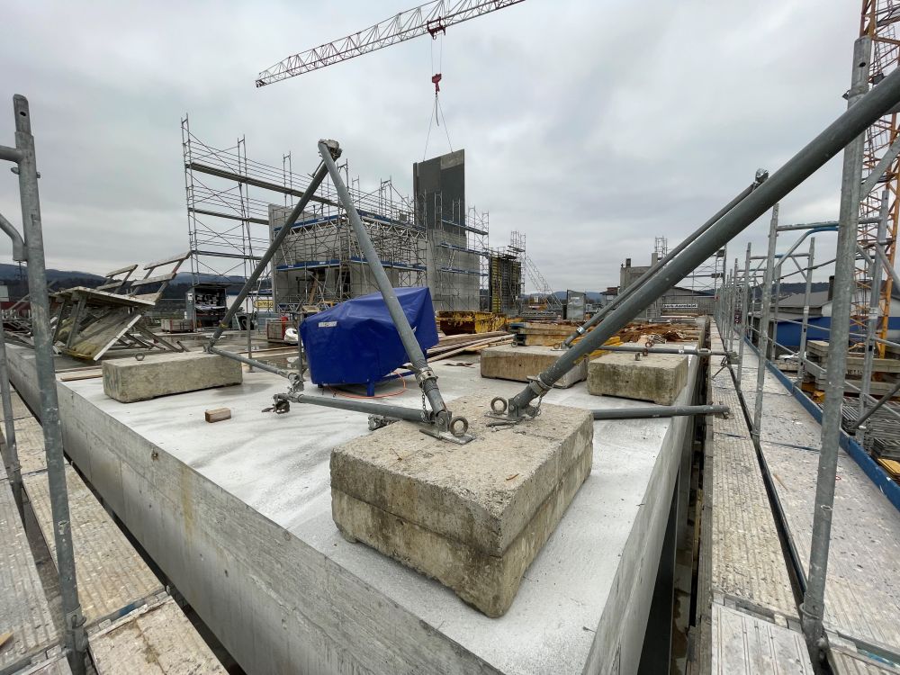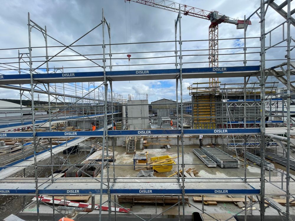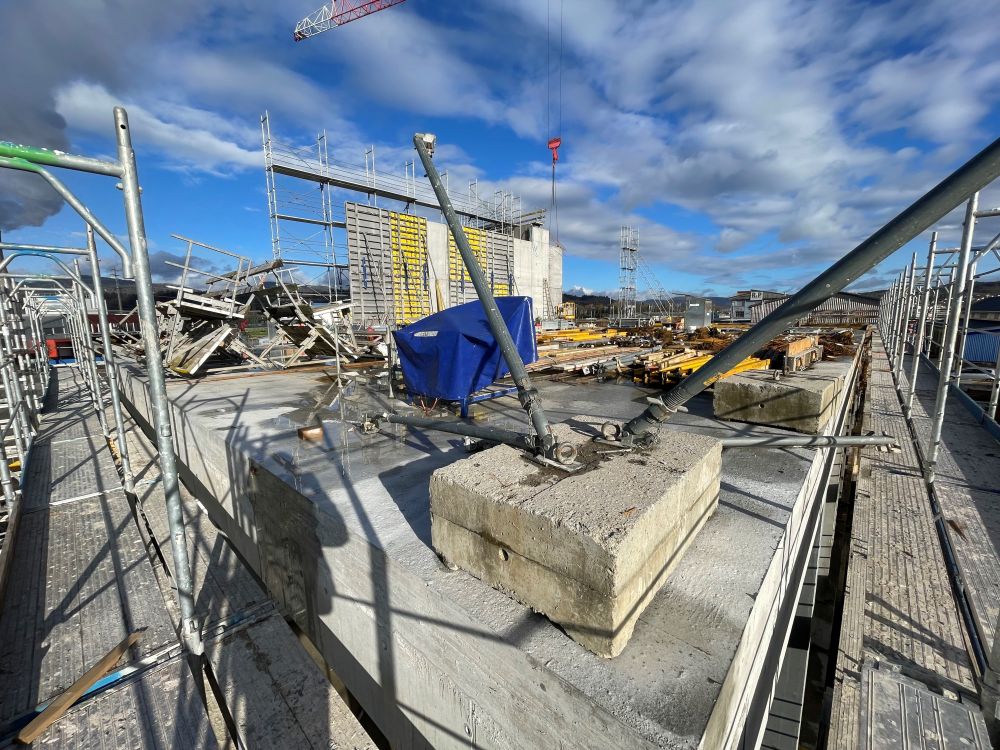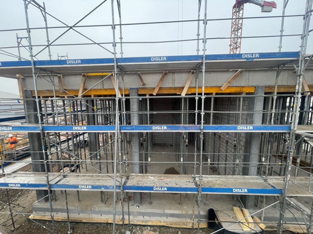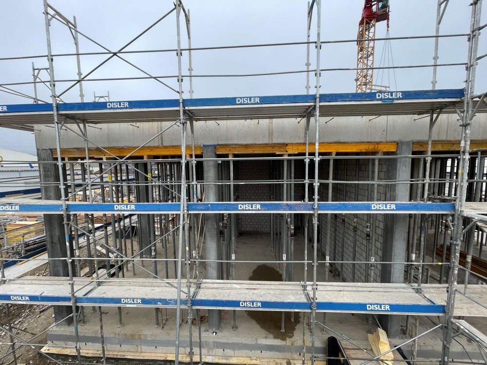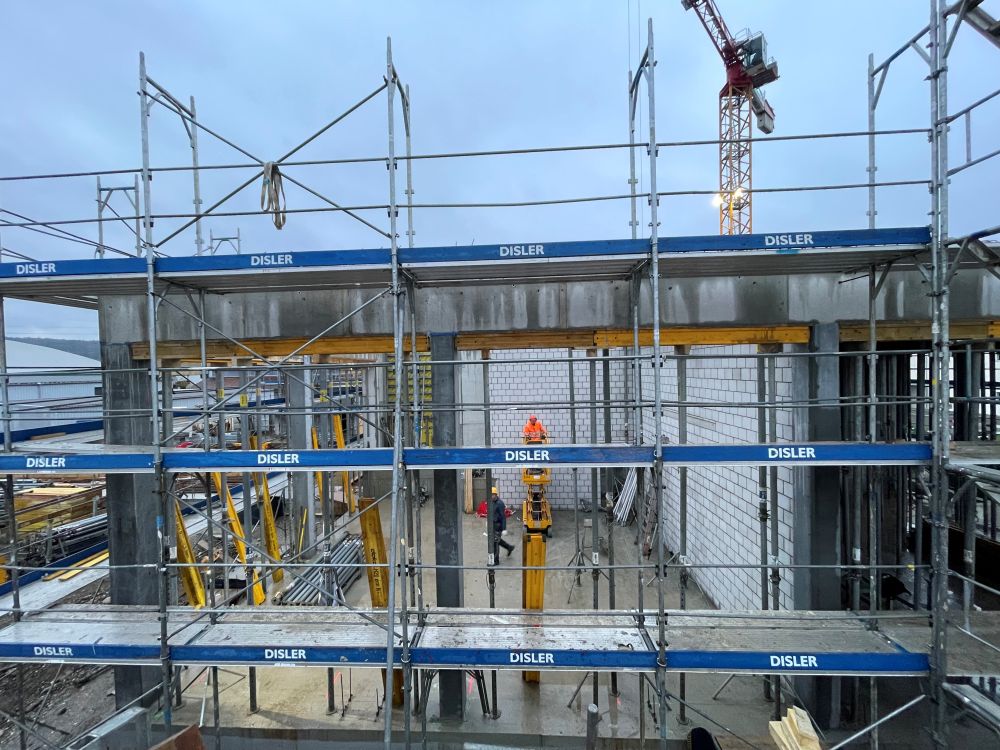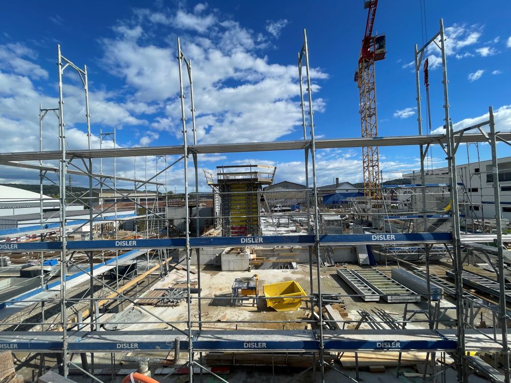 Avec l'achèvement du bétonnage de la dalle, nous entrons à présent dans la phase de gros œuvre de notre projet de nouvelle construction. Cette phase comprend la mise en place des structures porteuses et marquera une avancée significative sur le chantier.