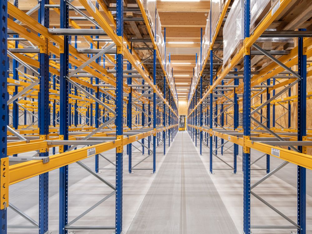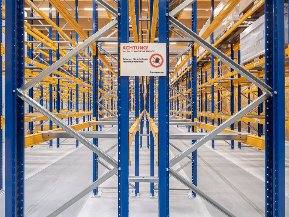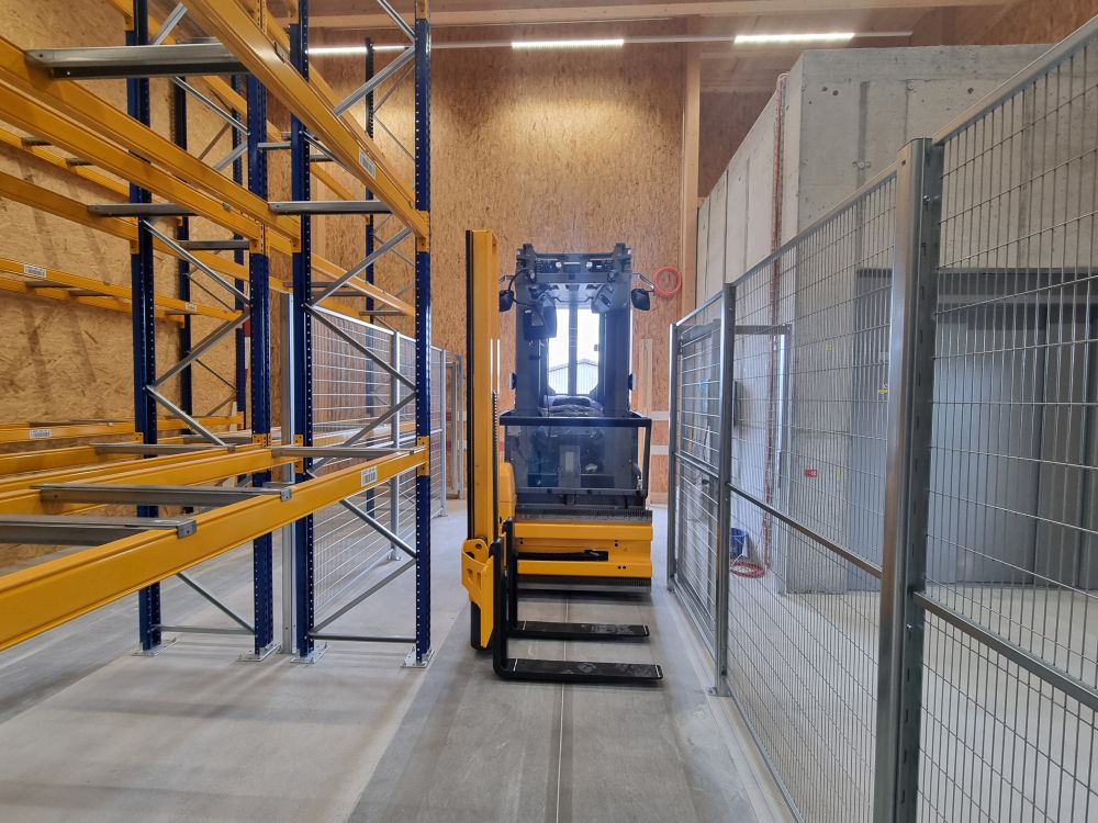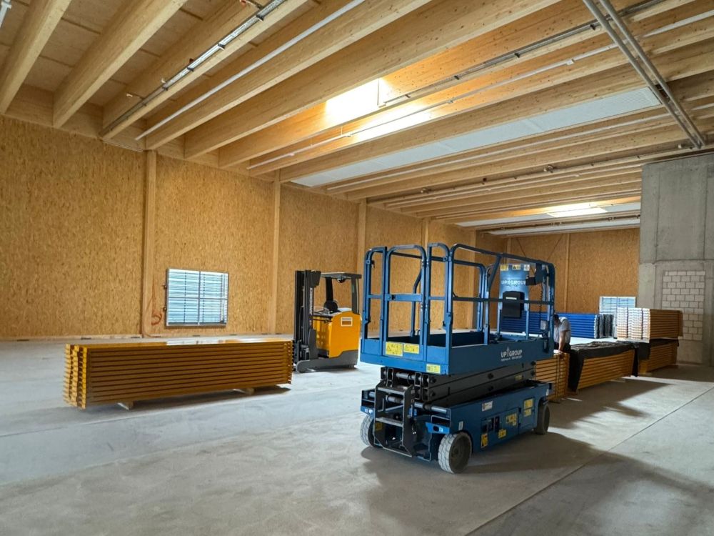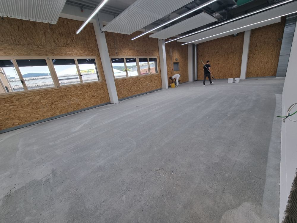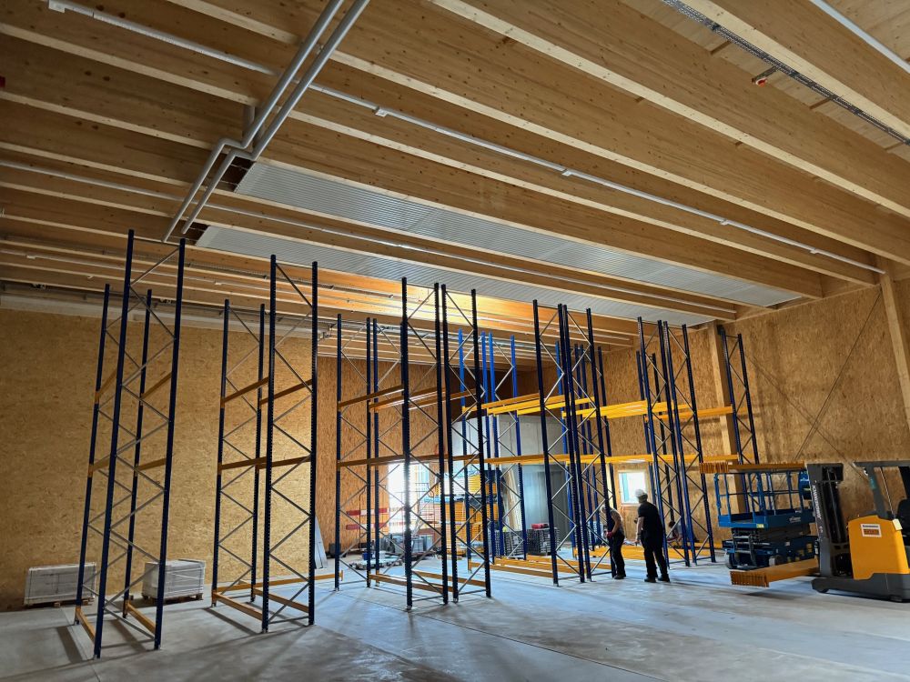 Les chapes ont été entièrement posées. Dans certaines zones du bâtiment, elles resteront visibles comme revêtement de sol moderne, tandis qu’au sein de l’entrepôt à hauts rayonnages, elles servent de voie de circulation pour les chariots élévateurs – posées avec une grande précision.