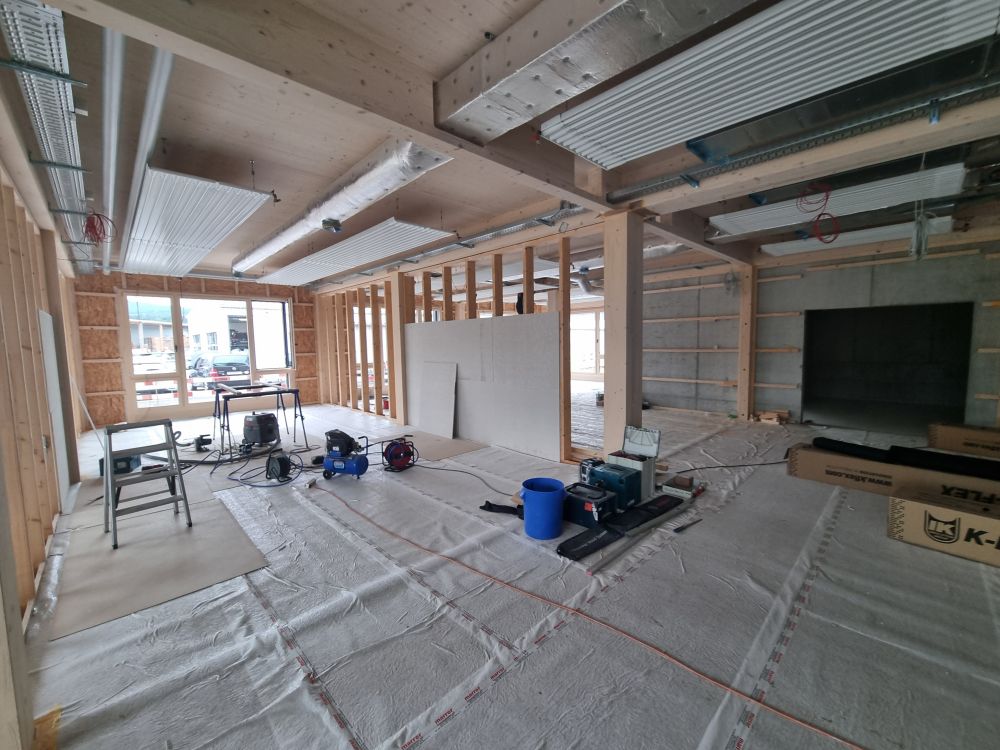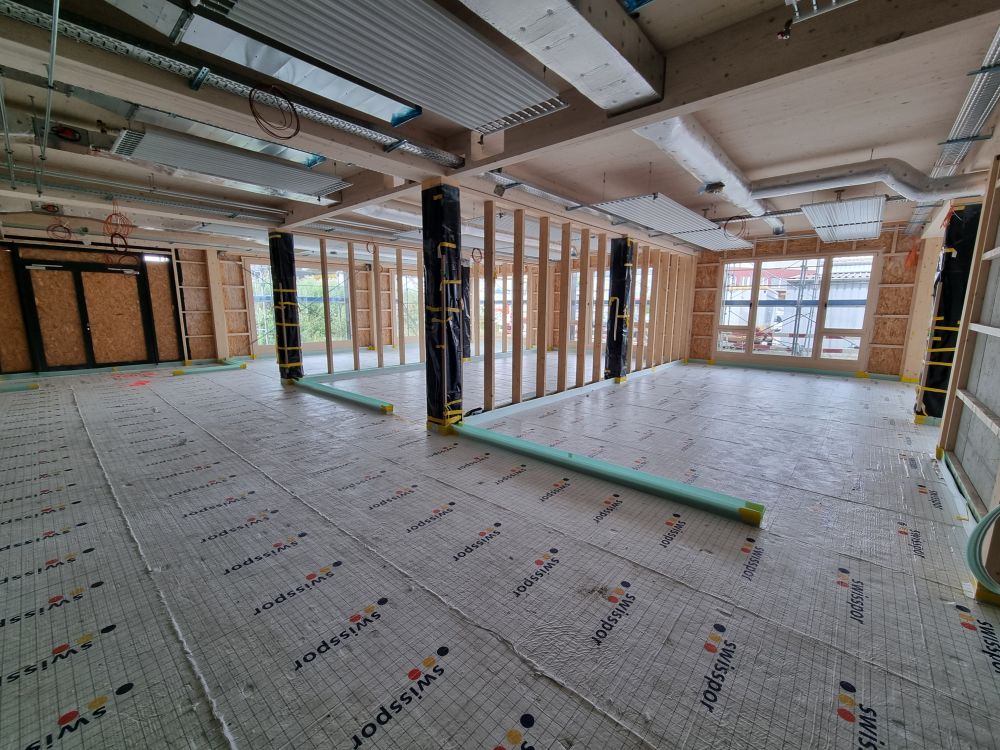 Les travaux d’aménagement intérieur avancent à grands pas. Toutes les fenêtres ont été posées et la direction des travaux intérieurs a désormais pris les commandes. Les différents corps de métier sont coordonnés et travaillent de manière étroite.