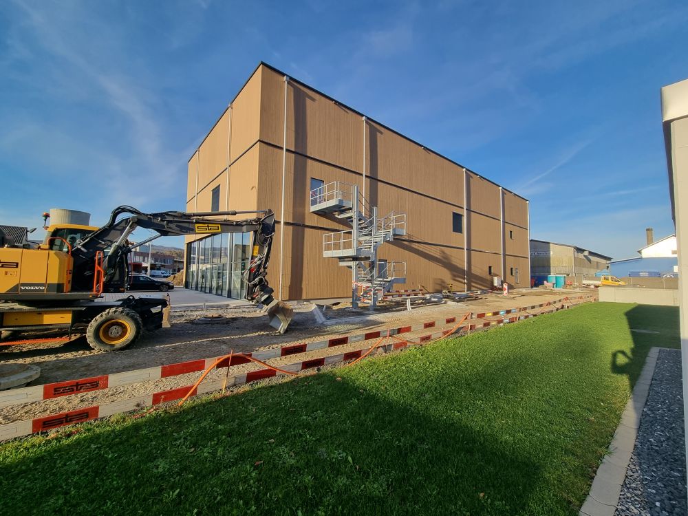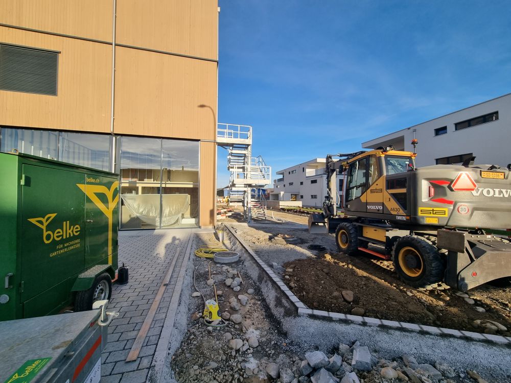 Les aménagements extérieurs progressent également de manière visible : le paysagiste a commencé les travaux d’environnement. Comme tout au long du chantier, nous faisons volontairement appel à des partenaires locaux afin de soutenir l’économie régionale.
