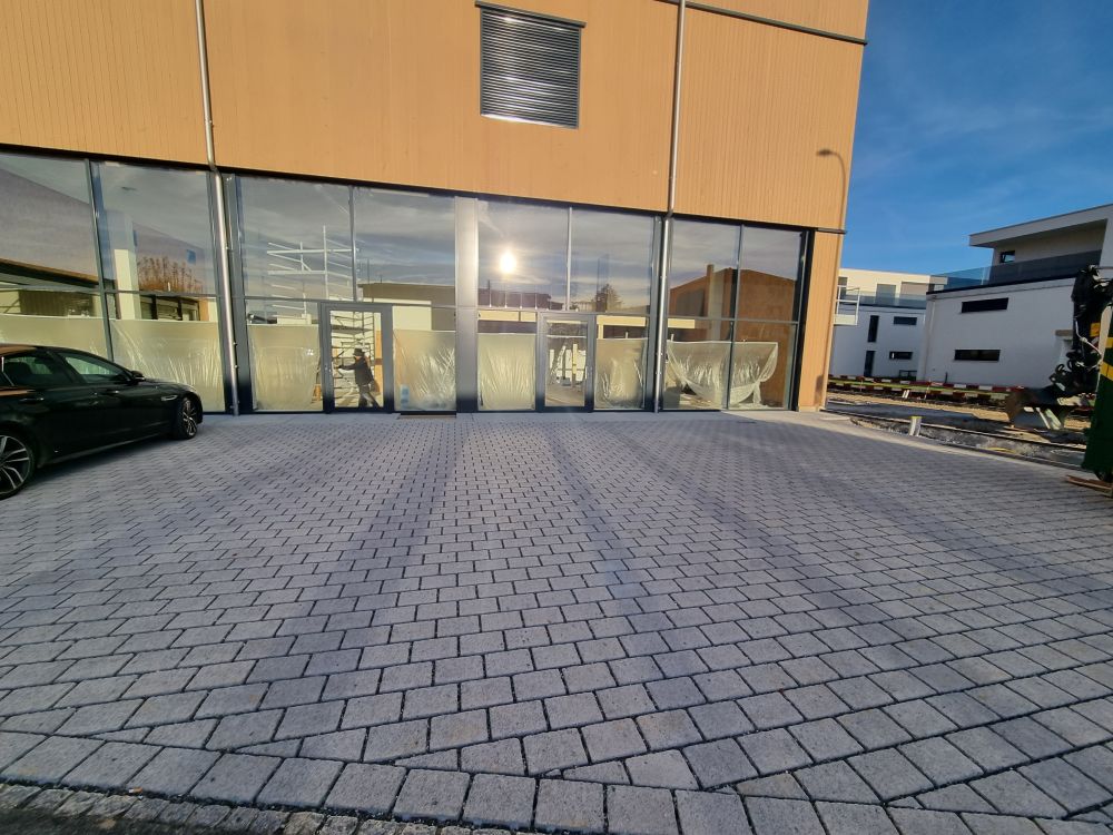 Nous nous rapprochons du terme du chantier à grands pas. Les canalisations et les places sont presque achevées, et sur la façade sud, les fenêtres impressionnantes constituent un point fort architectural qui souligne parfaitement l’élégance de l’ensemble.