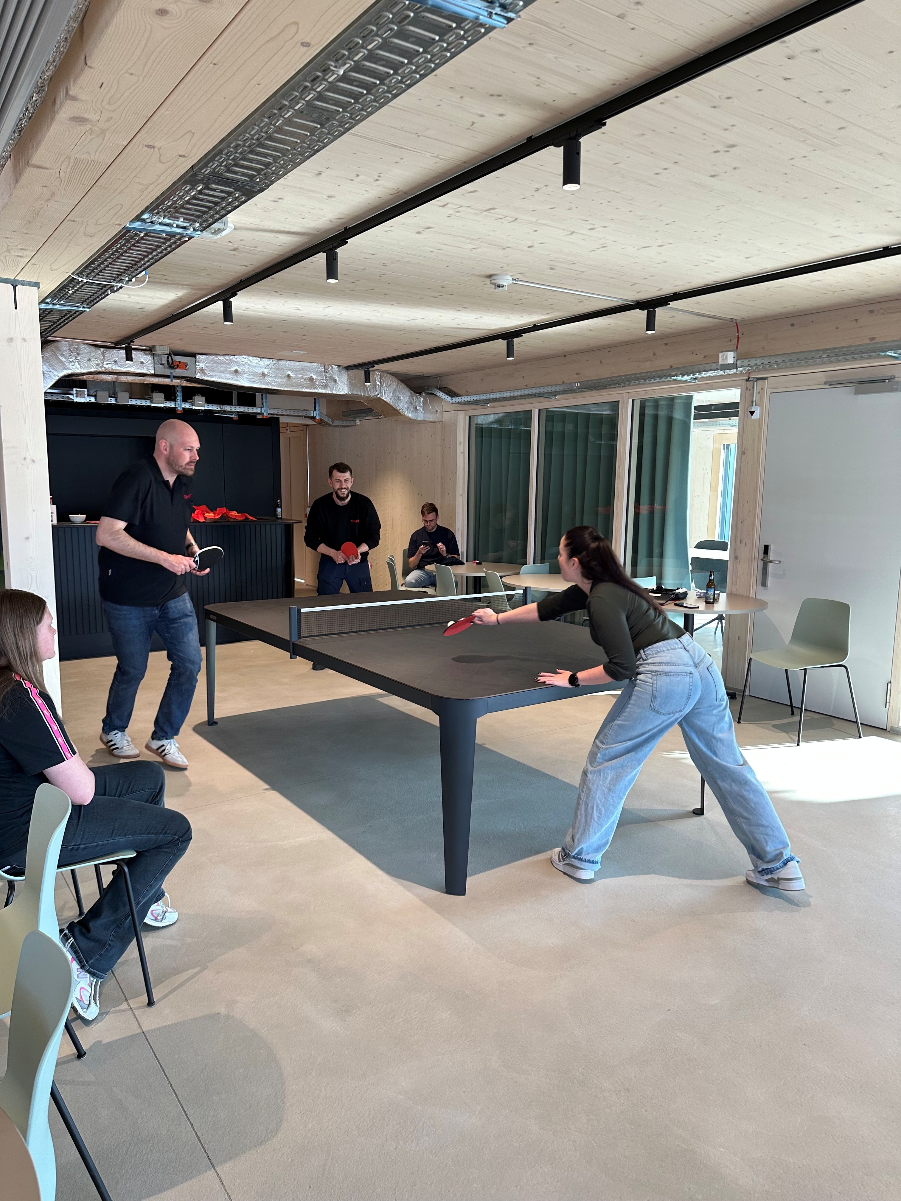 Pour marquer le début du long week-end de Pâques, nous avons clôturé le Jeudi saint par un tournoi interne de ping-pong. En raison des températures fraîches en soirée, nous n’avons pas encore pu inaugurer officiellement notre nouvelle terrasse. Nous avons donc spontanément transformé notre Toneteria en terrain de jeu et installé la table de ping-pong au cœur de l’action.